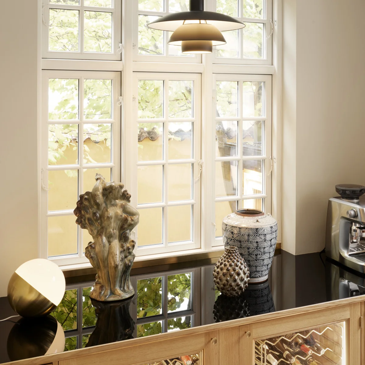 La lampe VL Studio lampe de table du fabricant danois Louis Poulsen est un classique intemporel parmi les éléments d'éclairage. La lampe de table est fabriquée en aluminium / laiton et en verre soufflé à la bouche. En raison de la fabrication artisanale de la lampe, il peut y avoir des différences minimes par rapport aux photos du produit. Il s'agit de pièces uniques. La lampe VL Studio est disponible en différentes tailles et peut être merveilleusement placée grâce à son design minimaliste.
