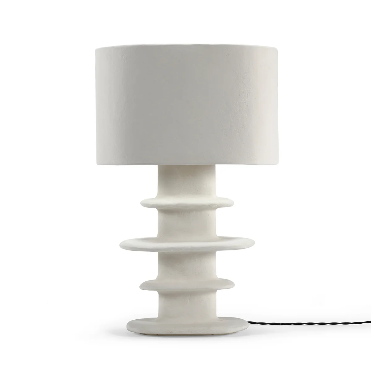 La lampe de table géométrique Earth de Serax , conçue par Marie Michielssen, capte la lumière de manière fascinante. Le pied sculptural en papier mâché blanc, qui rappelle les vases Billy emblématiques, apporte une touche marquante. La forme organique et la texture douce du matériau créent une atmosphère chaleureuse et accueillante.