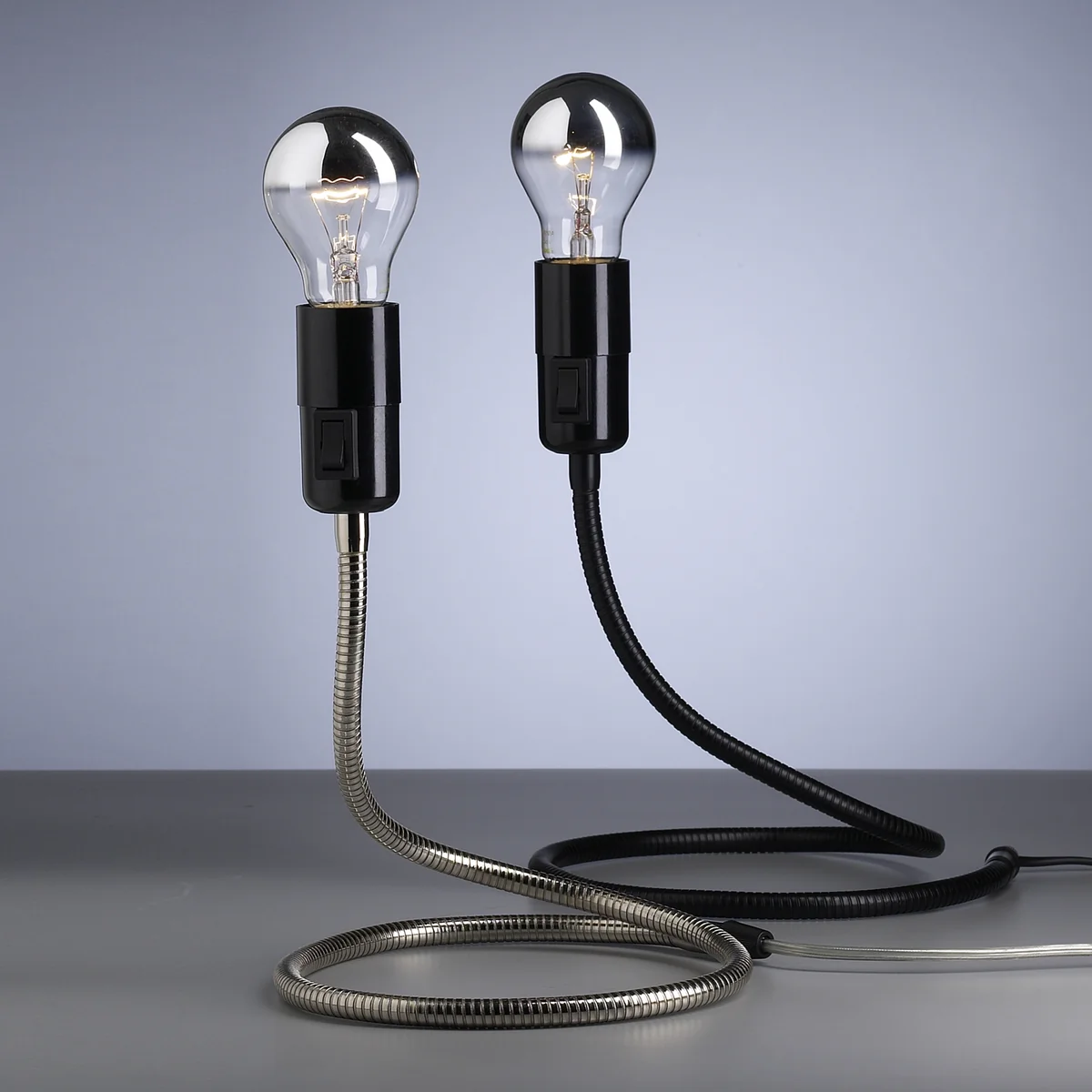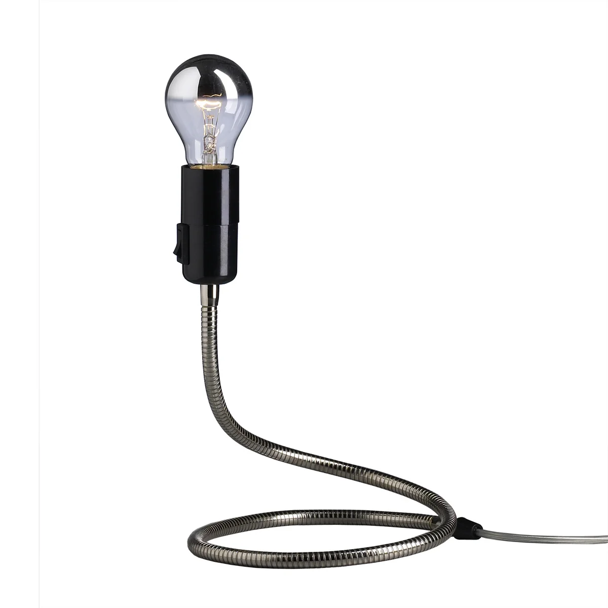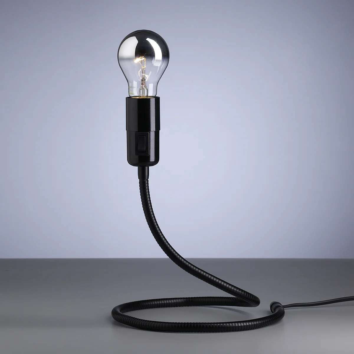 L'interrupteur de la lampe Lightworm de Tecnolumen se trouve sur la douille en plastique, de sorte qu'il ne traîne pas en arrière-plan. La Lightworm est disponible dans une version nickelée avec câble transparent et dans une version noire avec câble noire.