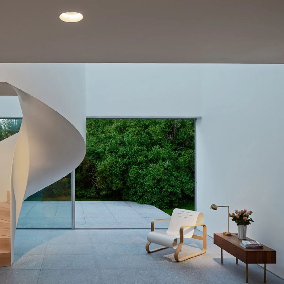 L'objectif était de créer une forme sobre avec une claire différenciation entre les différents éléments. Le design est marqué par des contours arrondis, doux, qui se retrouvent aussi bien à la base qu'au niveau de la tête de la lampe ainsi que sur le bras plié.