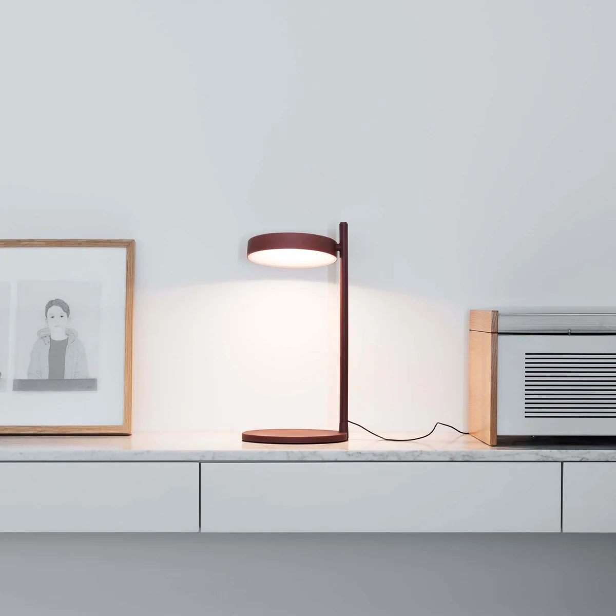 La lampe de table w182 Pastille LED b2 du duo de designers Sam Hecht et Kim Colin pour Wästberg séduit par sa forme minimaliste d'une lentille pure sur une construction mince. La tête d'éclairage en forme de disque, orientable dans toutes les directions, amène la lumière dans la position souhaitée. Sur la tête du trépied se trouve un bouton de commande unique qui règle l'intensité lumineuse et allume et éteint la lumière.