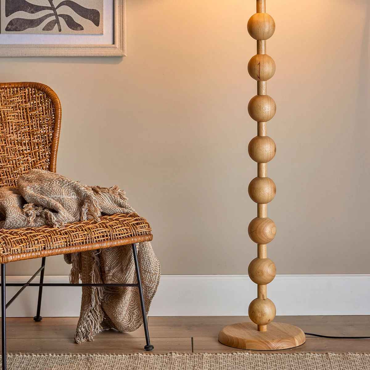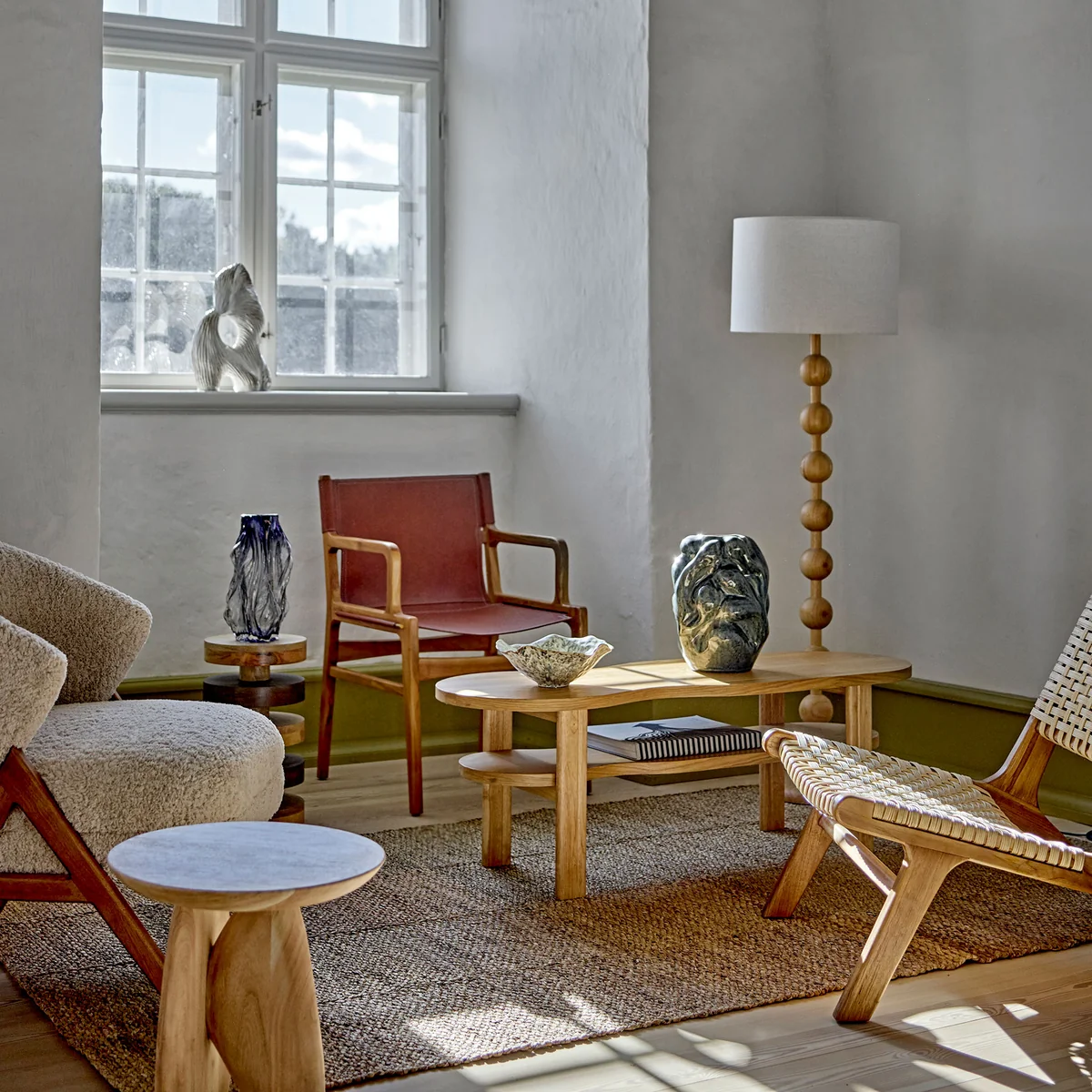 Le lampadaire Giacoma allie des formes organiques à une esthétique intemporelle. Fabriqué en bois d'hévéa, il apporte chaleur et caractère à chaque pièce. L'abat-jour sobre et neutre complète harmonieusement le design sculptural et s'intègre avec style dans différents styles d'aménagement.
