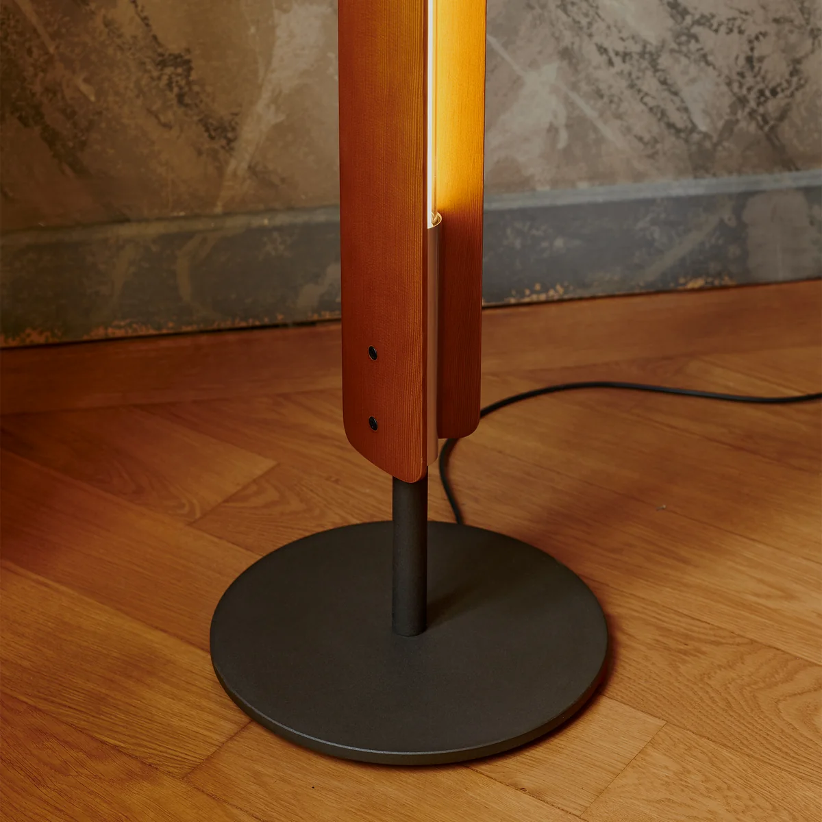 Le socle robuste en fer noir brut, séparé des ailes en bois par une entretoise filigrane, confère au lampadaire sa stabilité et sa force d'expression sculpturale. L'ampoule LED à intensité variable, développée spécialement pour ce luminaire, offre une lumière douce et d'ambiance et peut être remplacée par des tubes LED T8 disponibles dans le commerce. Inspirée des techniques traditionnelles de construction navale, la lampe Flora Scarp reflète la philosophie de l'entreprise. Seki-Han Floor Scarpa une profonde compréhension des matériaux, des proportions et de l'artisanat - un objet lumineux poétique qui allie chaleur, précision et intemporalité. Également disponible en tant que lampe suspendue .