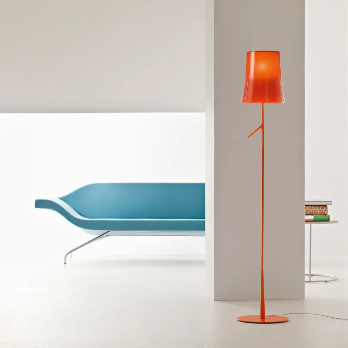 La lampe de lecture classique a été revisitée par Ludovica et Roberto Palomba avec le lampadaire Birdie de Foscarini. La particularité de ce design : Le pied de la lampe est plus large en bas et rappelle un tronc d'arbre délicat par sa forme et la branche latérale caractéristique, qui garde une place pour un petit oiseau (en anglais : birdie).