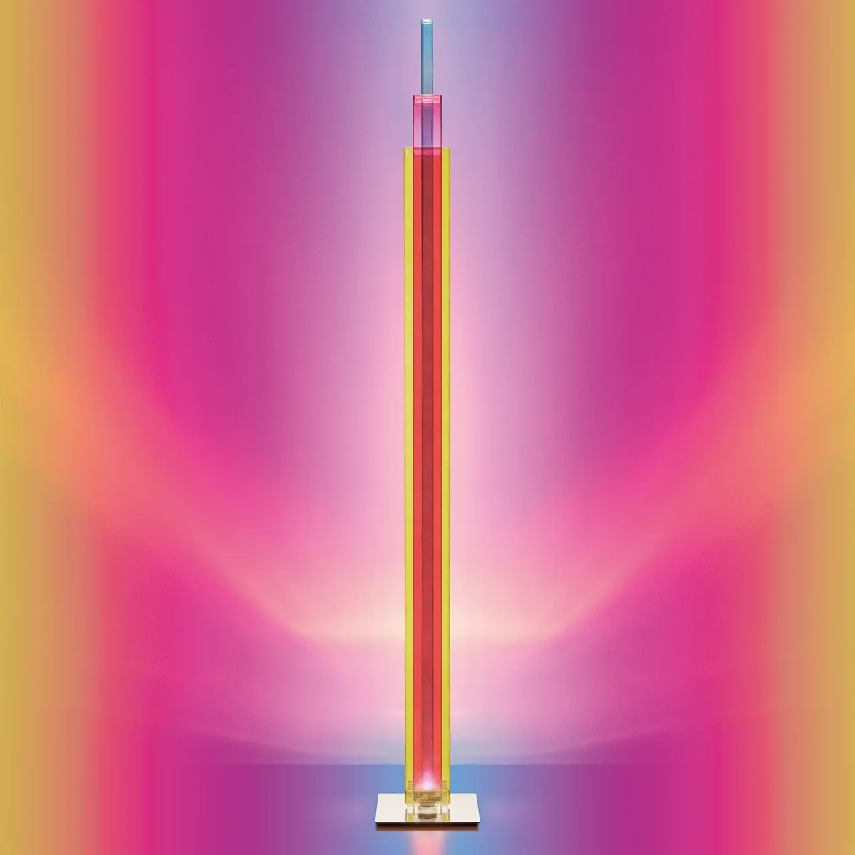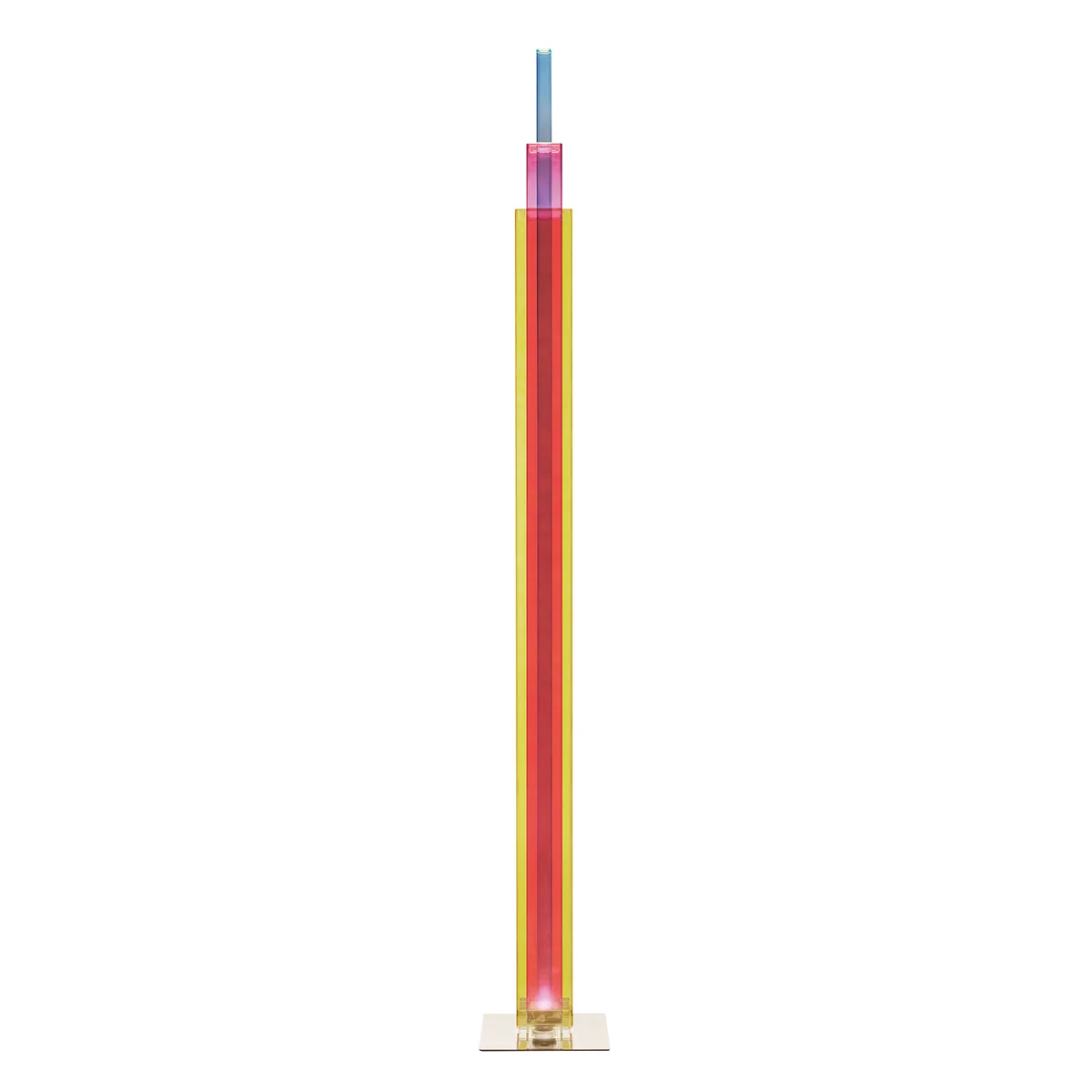 Le luminaire UpTown lampadaire du fabricant italien Foscarini séduit par son design hors du commun et, par conséquent, par la forte présence de ce luminaire. Trois volumes de verre plat superposés, colorés en jaune, rouge et bleu, confèrent aux tons une dimension particulière. UpTown Le lampadaire est déjà un véritable point de mire lorsqu'il est éteint, mais dès qu'il est allumé, il illumine toute la pièce. Le lampadaire répand son éclat de couleur des murs jusqu'au plafond de votre pièce.