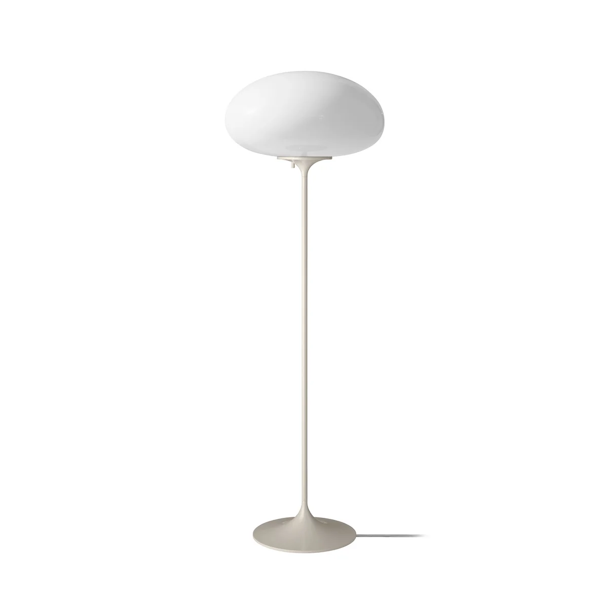 Lampadaire Stemlite H 110cm blanc/abat-jour verre dépoli HxØ 20x38cm/cable étoffe gris 220cm/avec interrupteur/structure acier chrome noire/base Ø25cm