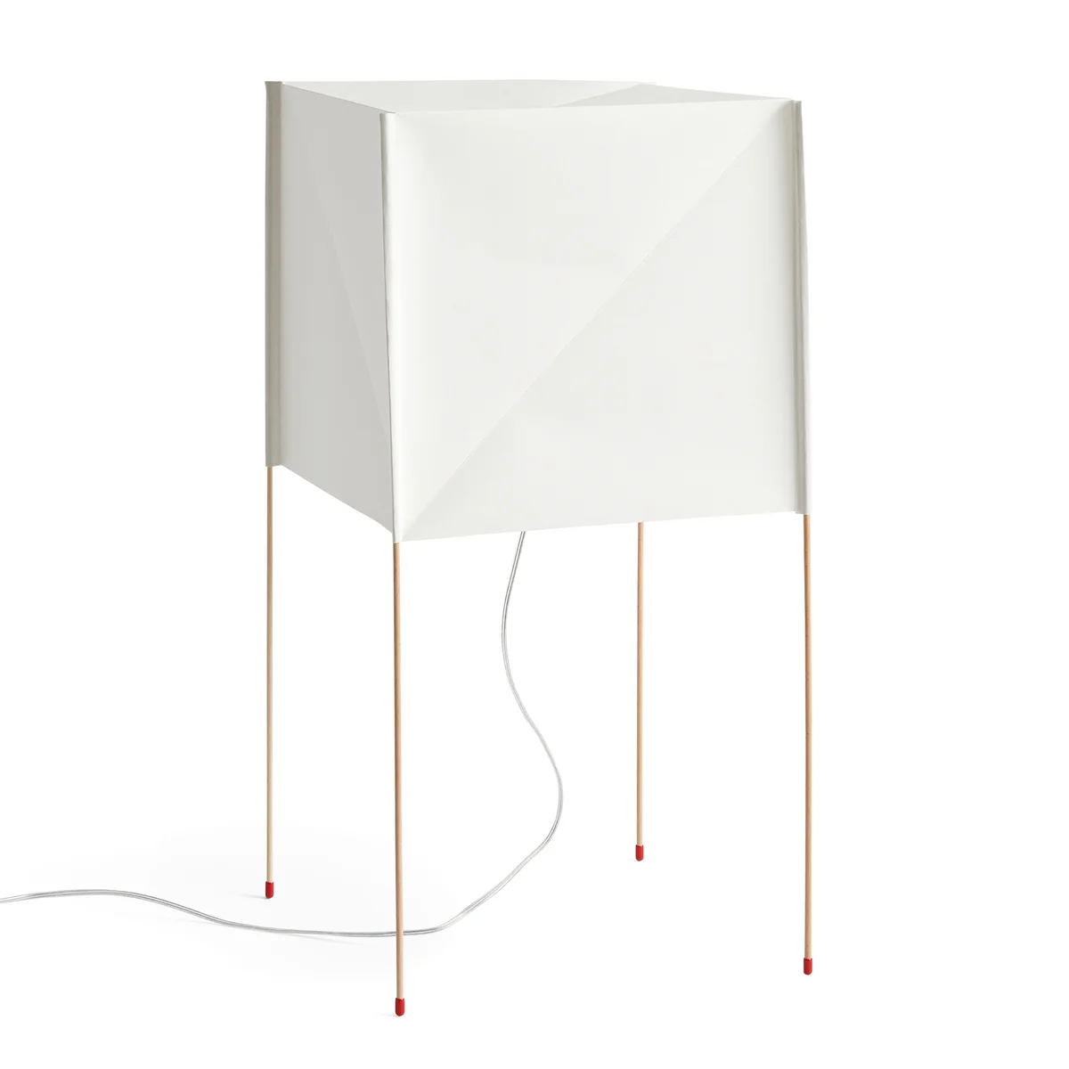 Le Paper Cube Papier de Bertjan Pot pour le fabricant danois HAY est un lampadaire cubique extrêmement élégant et fonctionnel. Son design s'inspire de la construction d'ornements en papier plié. Il a un design plat et s'assemble facilement. Le papier japonais robuste du luminaire est fabriqué à partir de bouteilles en PET. Les pieds en hêtre certifié FSC confèrent à l'abat-jour translucide un volume enveloppant qui produit une lumière douce. Paper Cube est également disponible en lampe de table . Elles fonctionnent avec une ampoule Retrofit standard - non comprise dans la livraison. Avec son design épuré et sa lumière chaude et évocatrice, elle convient à Paper Cube pour une multitude de pièces.