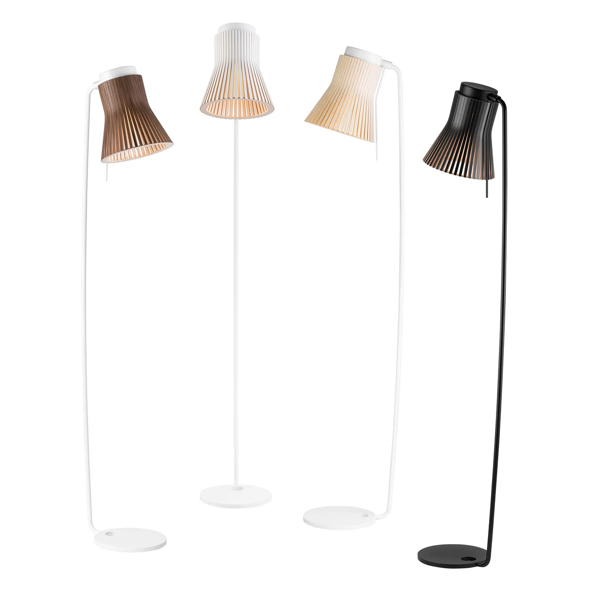 Le lampadaire Secto Petite 4610 de Seppo Koho impressionne par son design scandinave filigrane. L'abat-jour, légèrement cylindrique en bas et conique en haut, émet une lumière agréable et douce. La structure uniformément perforée et le matériau naturel confèrent aux luminaires Secto leur charme particulier.