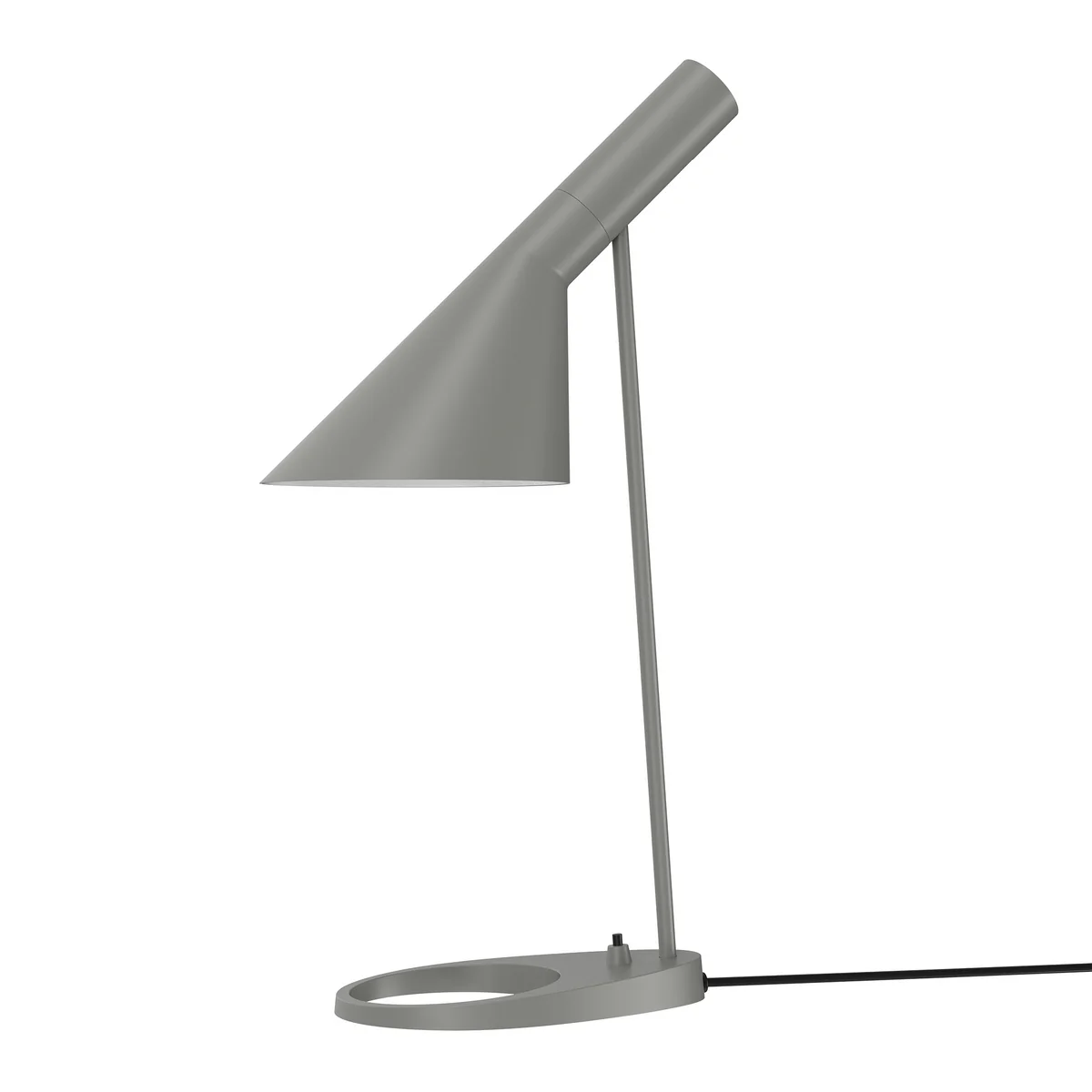 La lampe de table AJ est basée sur les mêmes principes que le lampadaire AJ, mais pour une meilleure utilisation comme lampe de travail, l'abat-jour a été agrandi. L'angle de l'abat-jour métallique conique est conçu de manière à correspondre à l'angle du support de lampe. C'est en tout cas ce qui était prévu à l'origine, mais en réalité, l'angle a été légèrement ajusté à titre de correction optique. Lorsque la lampe est inclinée vers le bas, le bord du support de lampe est horizontal. L'intérieur de l'abat-jour est émaillé en blanc mat. L'écran est efficace, on ne peut pas voir dans la source lumineuse.