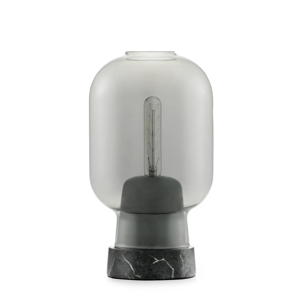 Simon Legald dit : " Parfois, on ne peut pas vraiment savoir pourquoi une idée pour un nouvel objet est née. Mais dans ce cas, l'inspiration vient directement d'une radio et d'un équipement hi-fi. Ceci est clairement évident dans la conception d'Amp. La forme ronde et transparente d'un tube a quelque chose de très spécial. J'ai pensé que ça irait très bien avec une lampe. J'ai choisi un type de verre qui est aussi utilisé pour les sabliers, entre autres. La forme doit être courbée et cintrée. J'ai choisi le marbre comme contrepoids au verre délicat. Je pense que les deux matériaux sont bien assortis."