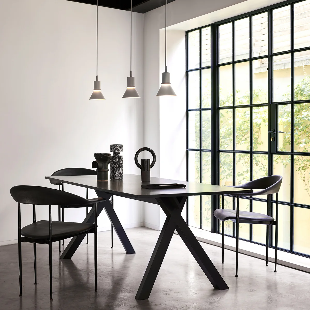 Les surfaces de la lampe suspendue Type 80 sont fabriquées en aluminium laqué mat et anodisé. Disponible en différentes couleurs, la suspension peut être adaptée à l'aménagement existant.