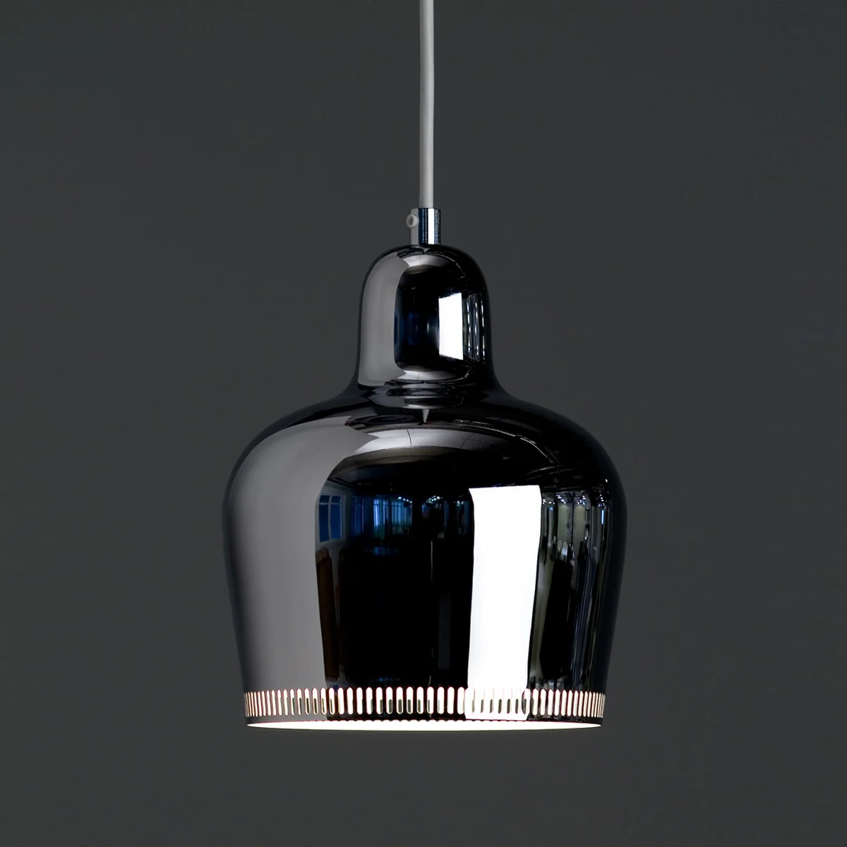 Alvar et sa femme Aino Aalto ont été chargés de concevoir l'intérieur du restaurant Savoy à Helsinki en 1936. L'élégante lampe suspendue Golden Bell fait partie de cet intérieur. Il a également été exposé dans le pavillon finlandais de l'exposition universelle de 1937 à Paris.