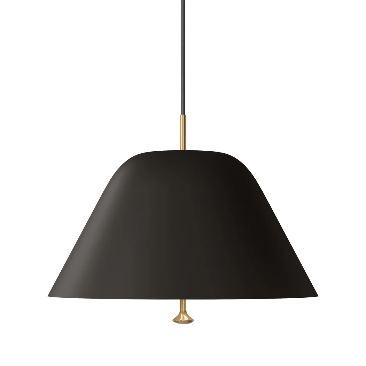 La suspension Levitate de Audo fait apparaître le salon sous la lumière la plus fine. Son langage formel intemporel joue avec l'ombre et la lumière, la gravité et la légèreté. L'abat-jour généreux de la lampe est perforé sur sa partie supérieure et projette ainsi également de la lumière vers le plafond, ce qui crée un contraste discret et stylé. Le luminaire suspendu Levitate est fixé sur des douilles en laiton. Le design a été conçu par le studio de design Afteroom.