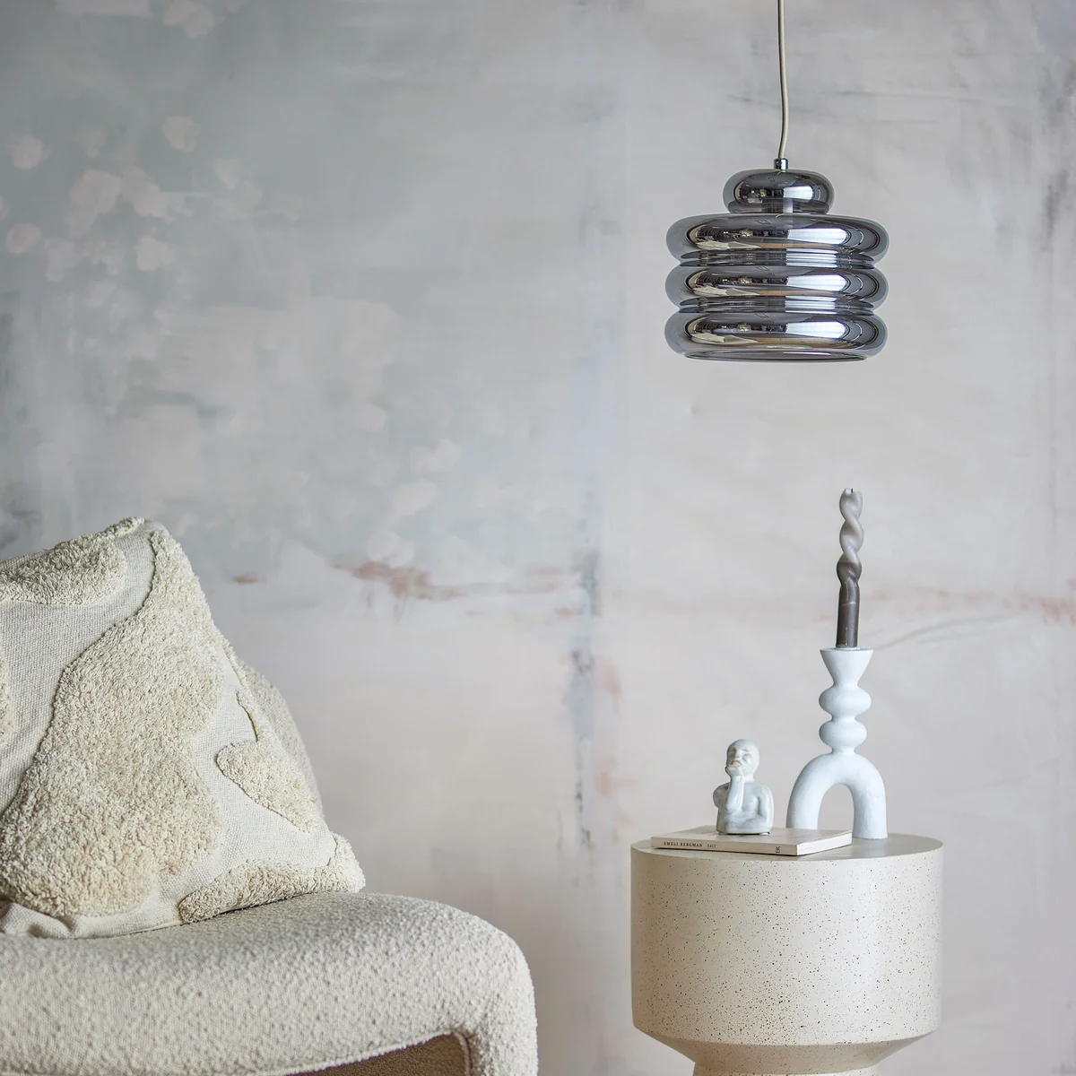 La suspension Spike de Bloomingville allie une forme simple à un charme festif. Son design rond et organique en verre argenté crée une atmosphère élégante, tandis que son look chromé raffiné apporte une touche de modernité. Qu'elle soit utilisée seule au-dessus de la table à manger ou en combinaison avec plusieurs luminaires, la suspension Spike apporte élégance et légèreté dans chaque pièce.