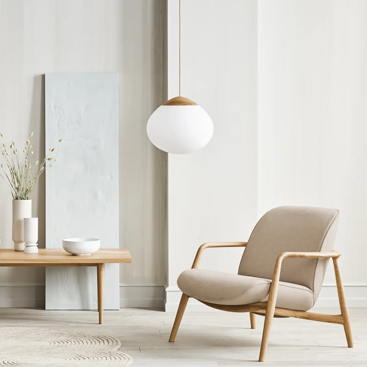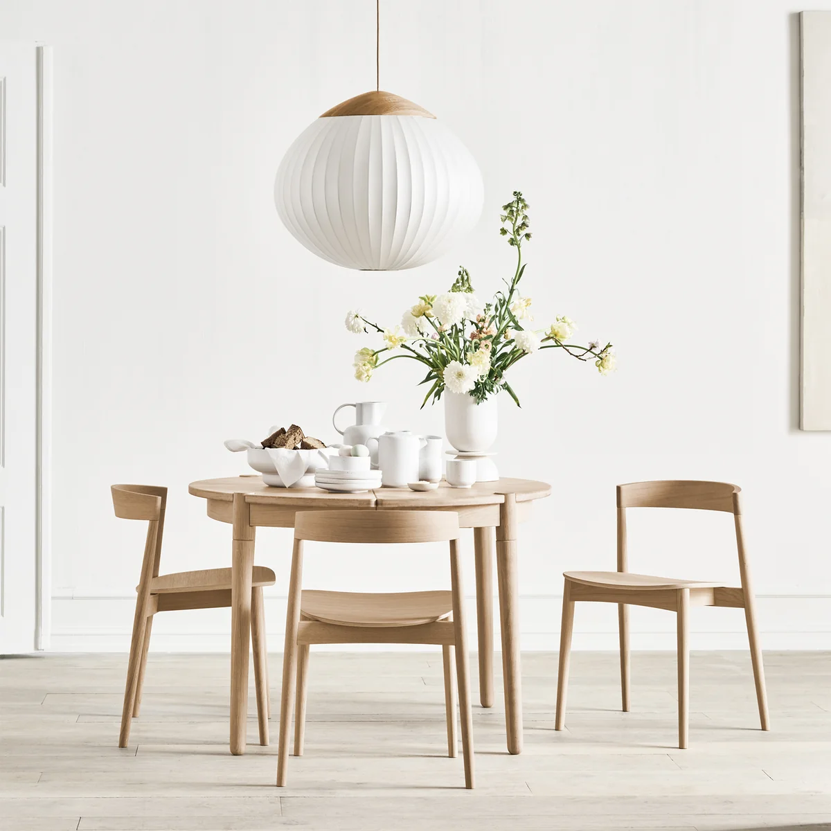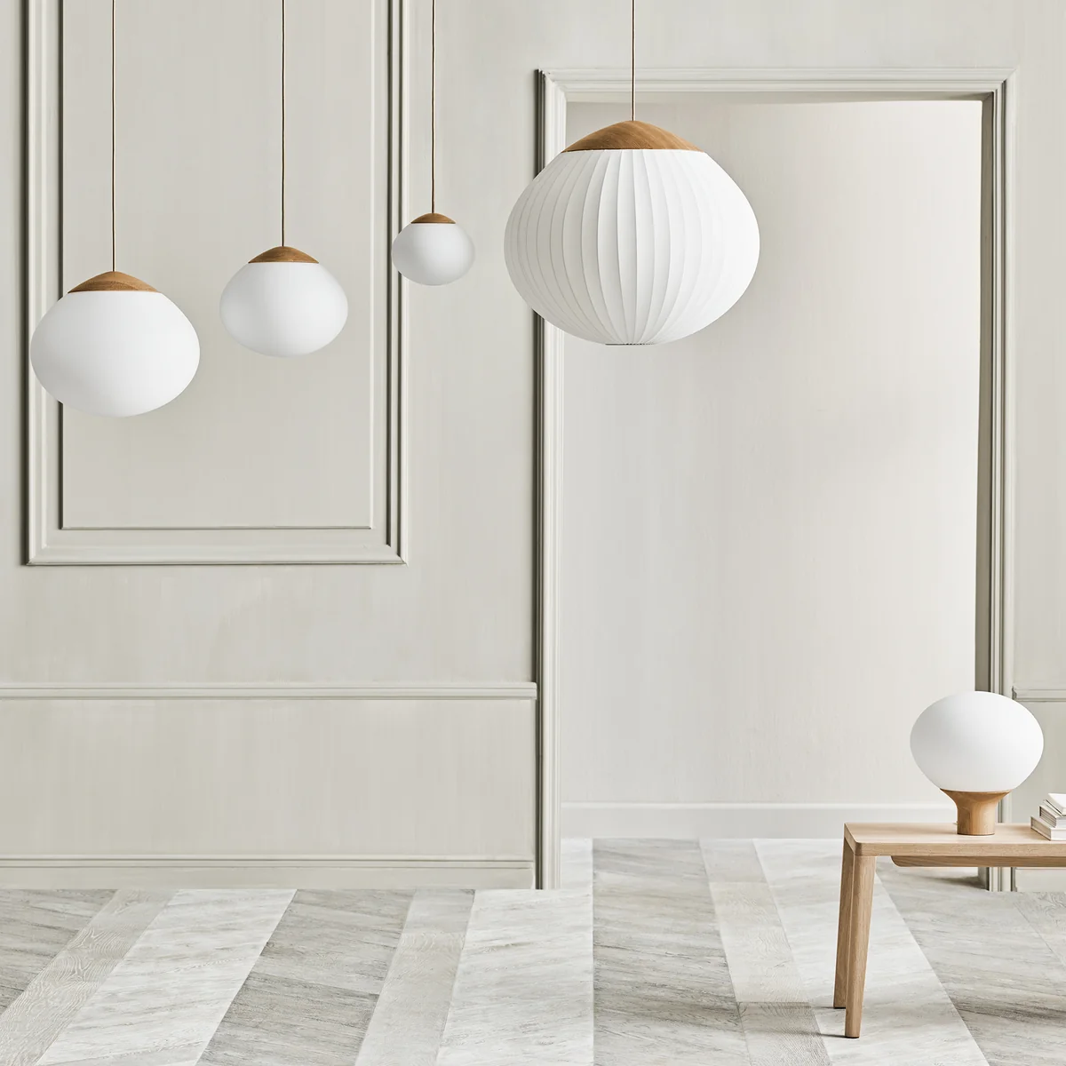 Les lampes suspendues Acorn de Bolia présentent une silhouette organique esthétiquement attrayante, inspirée de la forme caractéristique d'un chêne. Le luminaire est en bois de chêne huilé et dispose d'un abat-jour en verre opale. Le câble a été habilement intégré dans le design, ce qui lui confère un aspect élancé et immaculé. Grâce aux contrastes élégants des matériaux, la lampe est tout aussi attrayante, qu'elle soit allumée ou éteinte. Le design a été conçu par 365° North, un studio de design danois.