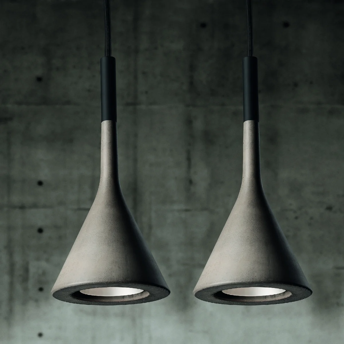 L'élégante lampe suspendue en béton Aplomb marque de son empreinte tout environnement, qu'il s'agisse d'espaces architecturaux ou privés, grâce à son apparence sobre. L'utilisation innovante et inhabituelle du béton comme matériau confère à la lampe un charme brut.