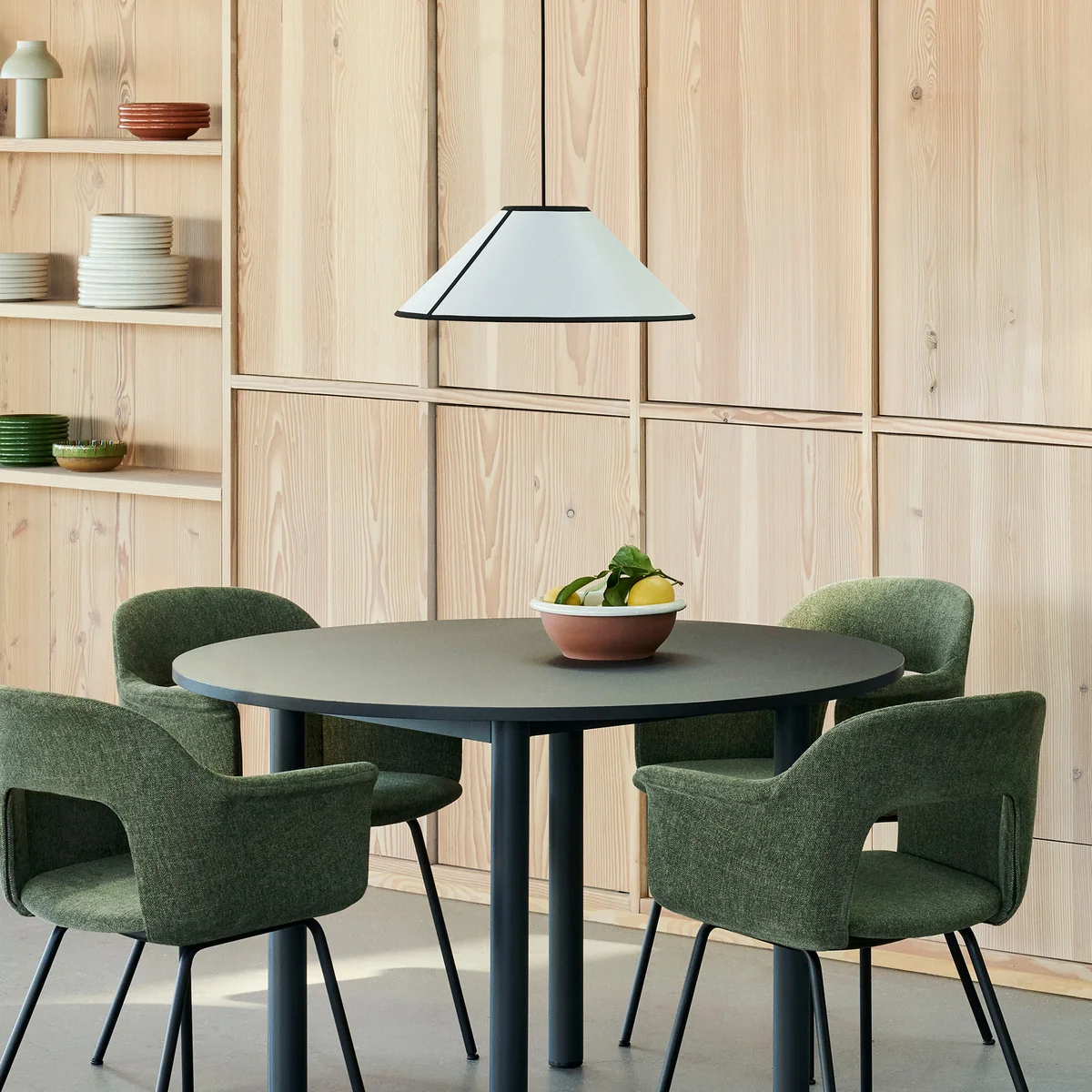 Conçu par Ana Kraš pour HAY , ce luminaire est une interprétation Ava Cone luminaire suspendu présente la forme classique Empire de manière moderne. L'abat-jour est fabriqué en ECOPET™, un plastique PET recyclé qui présente une structure semi-transparente semblable à celle du papier et assure une diffusion douce de la lumière. Un passepoil en tissu contrastant confère au luminaire un accent graphique et en fait un accroche-regard discret mais efficace. Que ce soit dans la chambre à coucher, l'entrée, le salon ou la salle à manger, la Ava Cone s'intègre dans les styles d'aménagement les plus divers grâce à son design clair et intemporel et crée une atmosphère chaleureuse et accueillante.