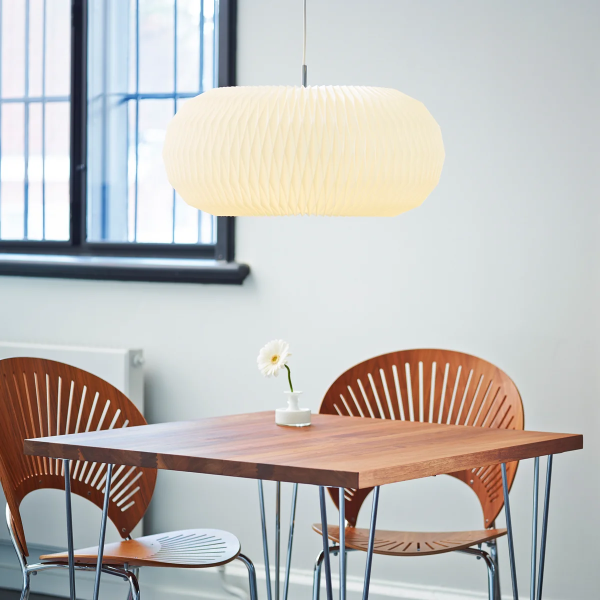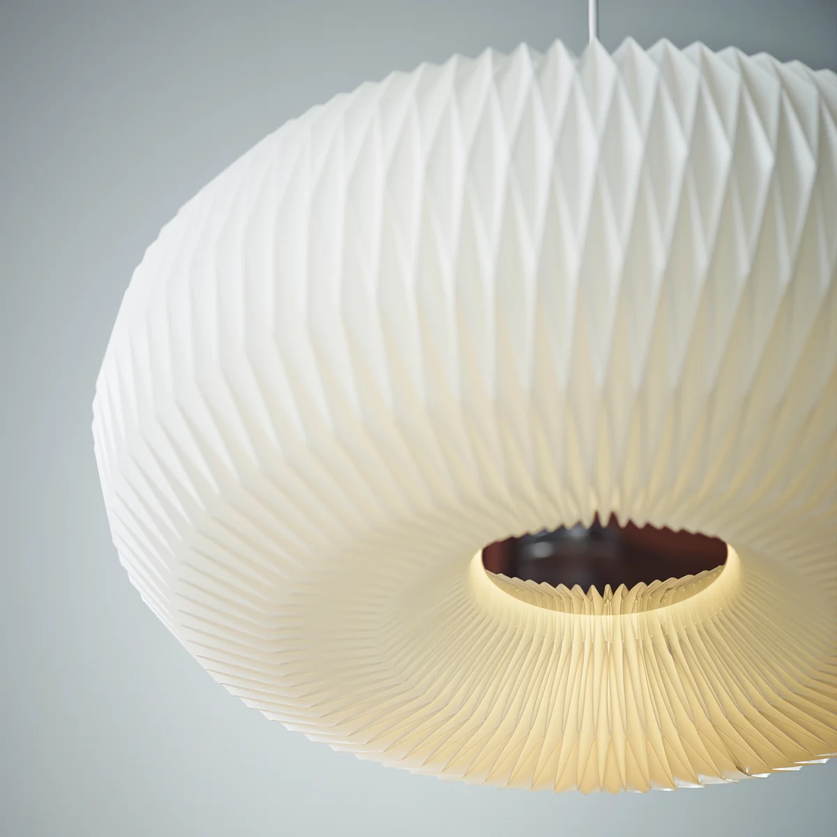 La lampe Donut Suspension de Lise Navne pour Le Klint est fabriquée à la main en plastique et en métal et est disponible en différentes tailles.