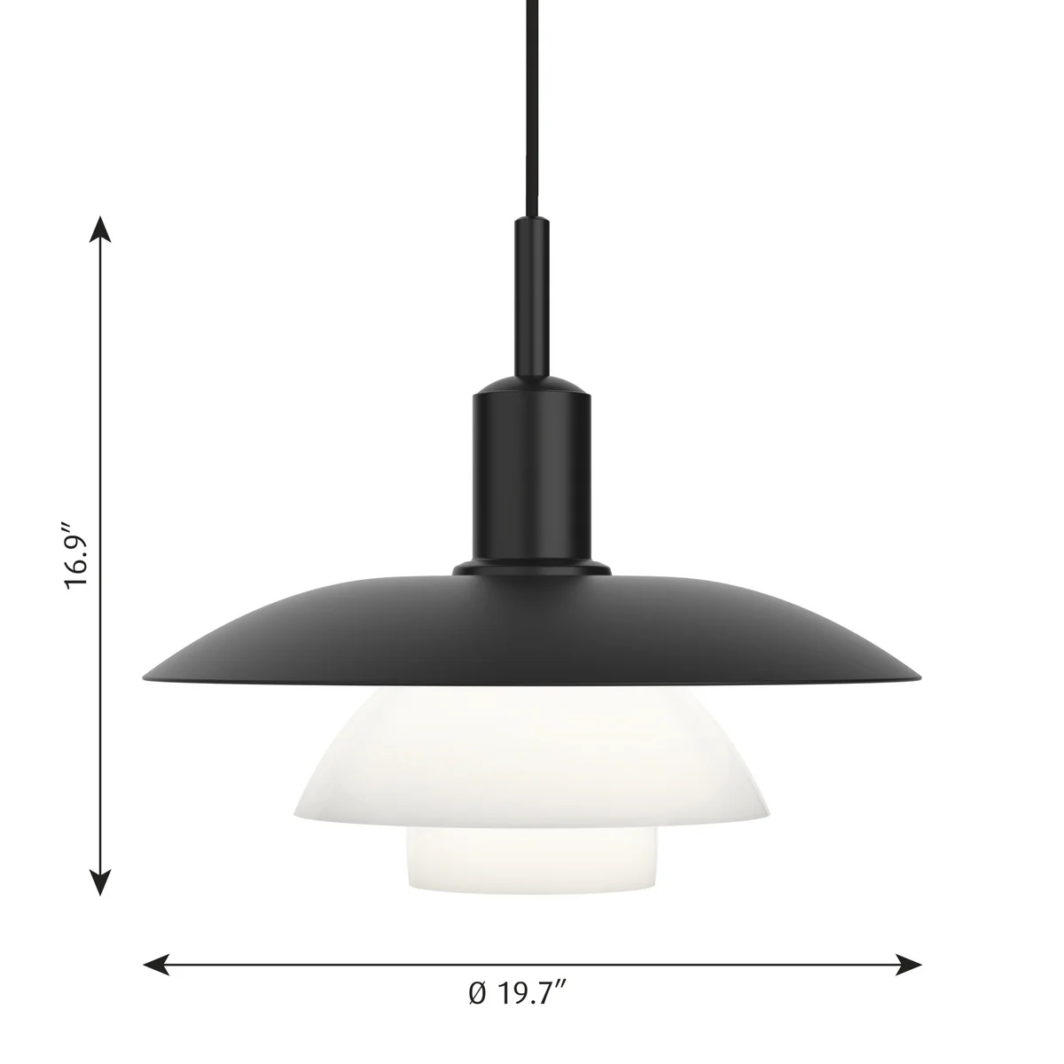 Le luminaire suspendu de Louis Poulsen est en aluminium monochrome laqué / laminé mat.