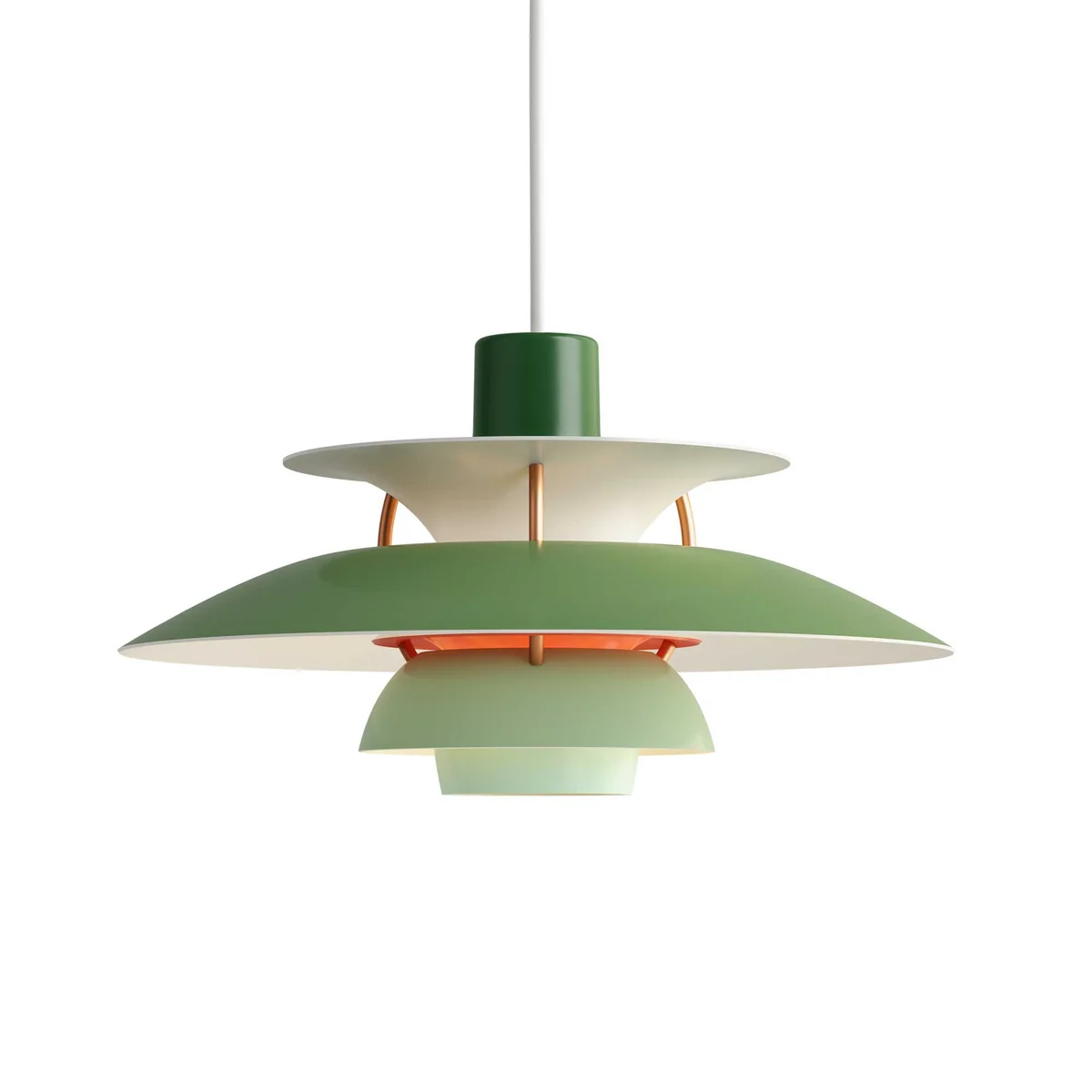Henningsen a conçu le PH 5 en réponse aux changements constants de forme et de taille des lampes à incandescence. Il a développé un luminaire qui, indépendamment de la façon dont le luminaire est monté et du type de lampe utilisé, est toujours resté totalement sans éblouissement. Henningsen souhaitait également utiliser le PH 5 pour améliorer le rendu des couleurs de la lampe. De petits écrans rouges et bleus ont été utilisés pour compléter la couleur dans la zone du spectre que l'œil percevait mal - à savoir le rouge et le bleu. Dans le même temps, la lumière est atténuée dans la zone moyenne jaune-vert, dans laquelle l'œil est le plus sensible. Le PH 5 Mini est lancé avec une nouvelle palette de couleurs innovante. La lampe joue avec les couleurs. Il commence par le ton le plus sombre en haut et devient plus doux d'un écran à l'autre.