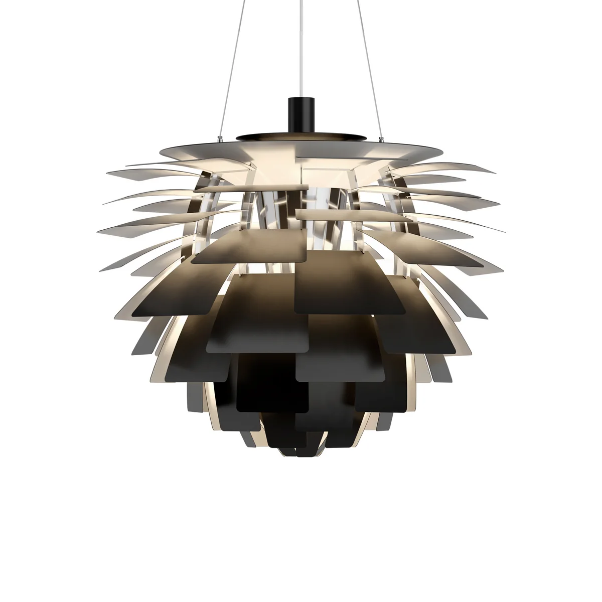 Comme chaque rangée est décalée par rapport à la précédente, les 72 feuilles peuvent se "couvrir" les unes les autres, créant ainsi un luminaire omnidirectionnel sans éblouissement dont la source lumineuse reste cachée, quelle que soit la perspective. La lumière est transmise et réfléchie sur les feuilles situées en dessous, créant ainsi un éclairage distinct et unique. Les premiers Artichoques ont été conçus pour un restaurant de Copenhague appelé Langelinie Pavilion - où ils sont toujours accrochés aujourd'hui.
