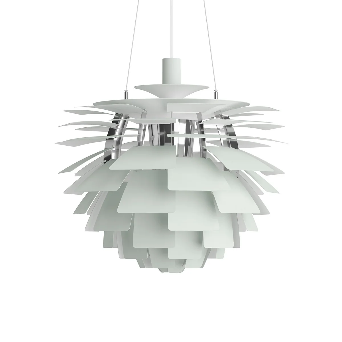 Comme chaque rangée est décalée par rapport à la précédente, les 72 feuilles peuvent se "couvrir" les unes les autres, créant ainsi un luminaire omnidirectionnel sans éblouissement dont la source lumineuse reste cachée, quelle que soit la perspective. La lumière est transmise et réfléchie sur les feuilles situées en dessous, créant ainsi un éclairage distinct et unique. Les premiers Artichoques ont été conçus pour un restaurant de Copenhague appelé Langelinie Pavilion - où ils sont toujours accrochés aujourd'hui.