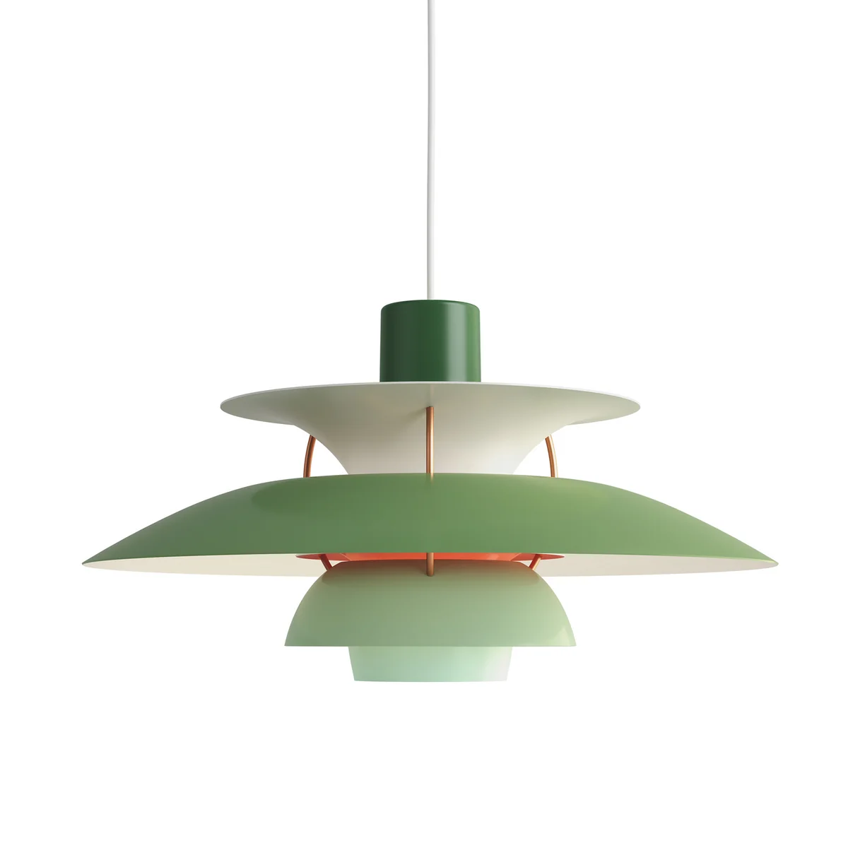 Le luminaire suspendu PH 5 fait partie de la famille de produits PH 3 à abat-jour. Le système d'abat-jour PH 3 était au départ une solution de luminaire suspendu, mais il a très vite évolué vers d'autres types de luminaires pour les tables, les sols, les murs et un grand nombre de lustres. En conséquence des différentes tailles, matériaux, surfaces et sources lumineuses, plus de mille variantes ont été développées au fil des ans.