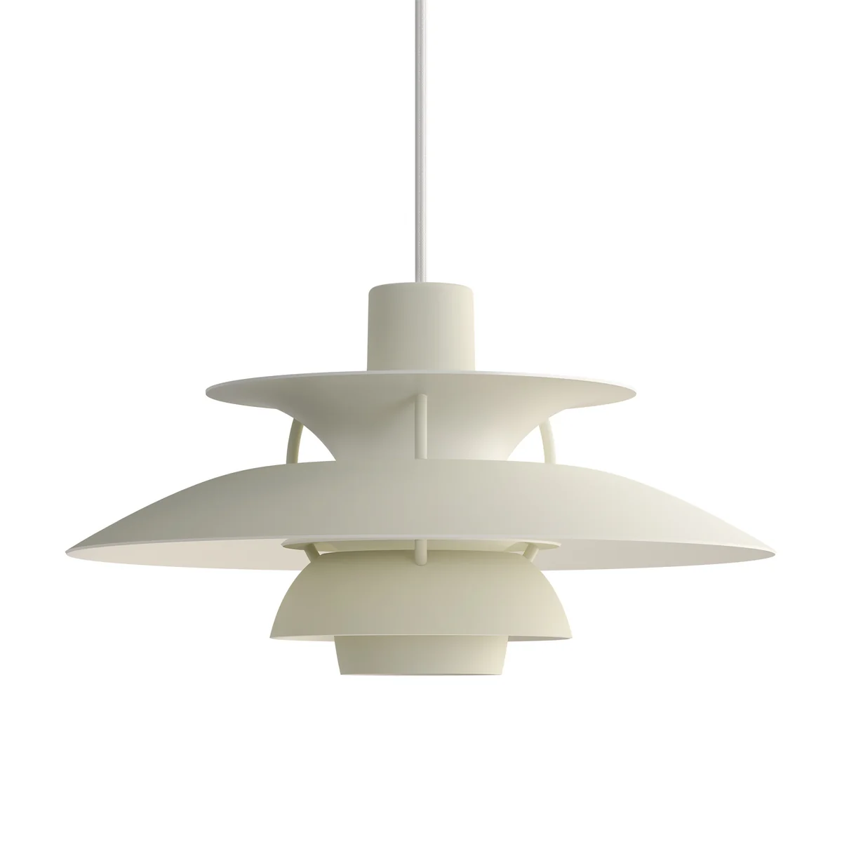 Le luminaire suspendu PH 5 fait partie de la famille de produits PH 3 à abat-jour. Le système d'abat-jour PH 3 était au départ une solution de luminaire suspendu, mais il a très vite évolué vers d'autres types de luminaires pour les tables, les sols, les murs et un grand nombre de lustres. En conséquence des différentes tailles, matériaux, surfaces et sources lumineuses, plus de mille variantes ont été développées au fil des ans.