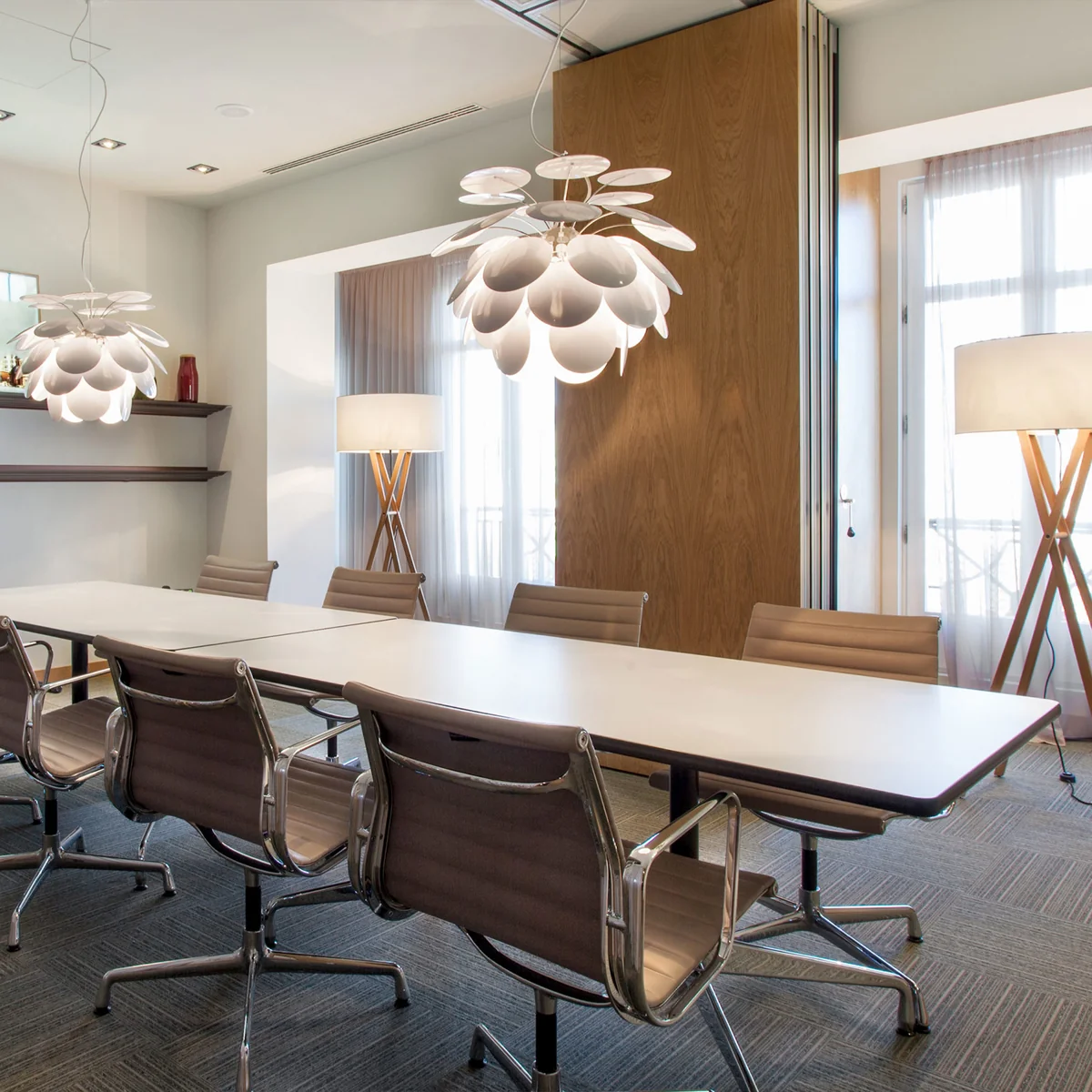 Le Discocó luminaire suspendu de marset séduit par son jeu dramatique de lumières et d'ombres douces - et ce même lorsqu'il est éteint ! En 2008, le hambourgeois Christophe Mathieu a dessiné pour la première fois le Discocó a conçu le luminaire.