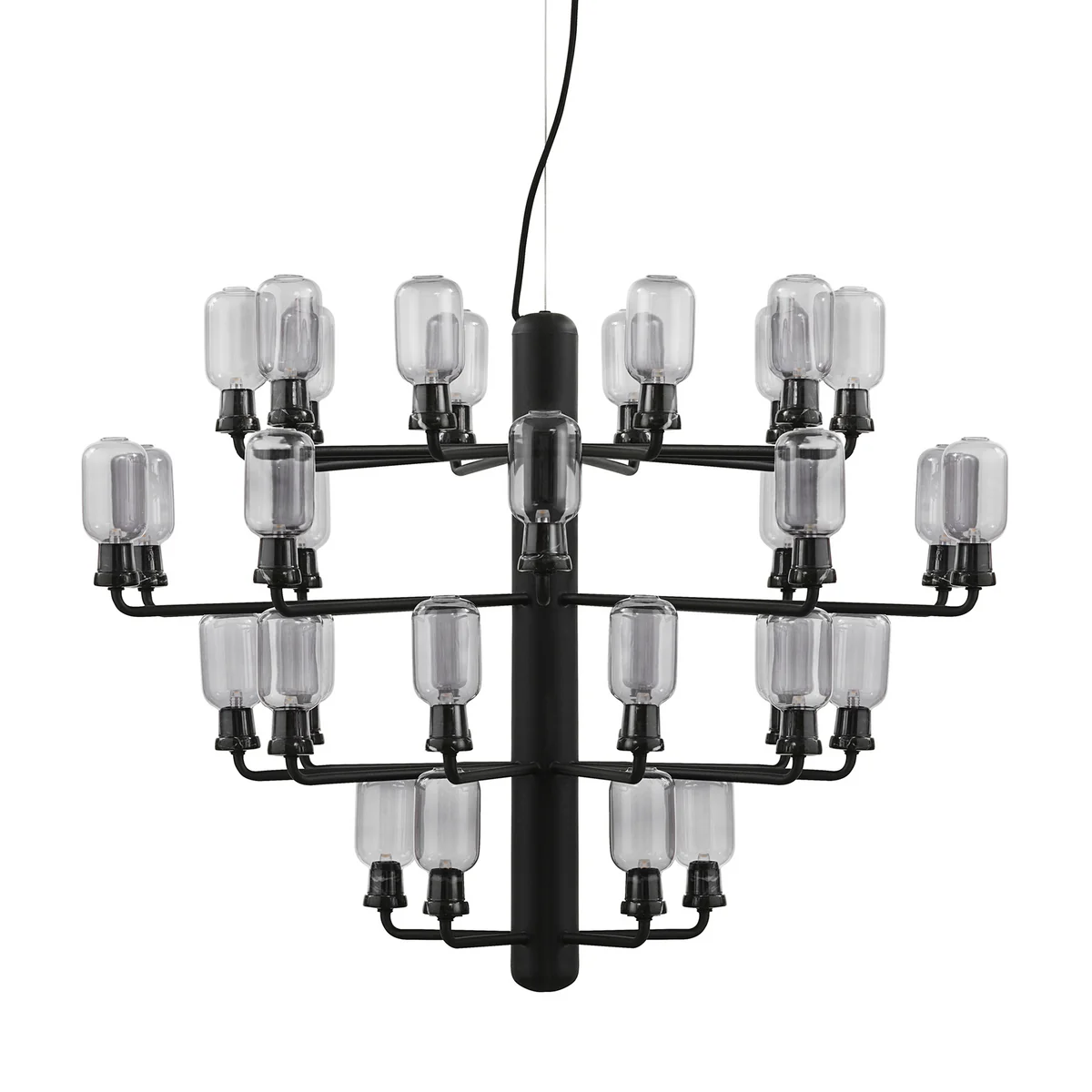 Le lustre Amp est disponible en deux tailles : avec 15 ou 35 bras et en différentes couleurs.