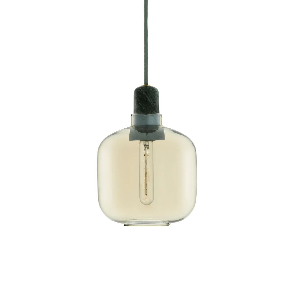 Les deux variantes sont disponibles avec un amp abat-jour en or ou en couleur fumée. La lampe Amp La suspension est disponible avec une douille en marbre noir du plus bel effet ou en vert jade glamour, qui souligne l'élégance naturelle du matériau.