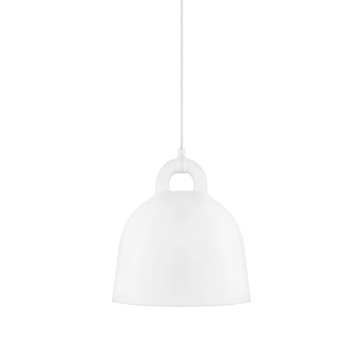 La Bell de Normann Copenhagen est une lampe à éclairage directionnel qui, selon le côté depuis lequel elle est observée, change de personnalité et véhicule de nouvelles expressions. La partie intérieure claire réfléchit la lumière directe qui se diffuse de manière conique et qui pourrait par exemple constituer un bon éclairage au dessus de la table de repas. C'est surtout la combinaison de différentes tailles qui fait de la Bell le centre de tous les regards.