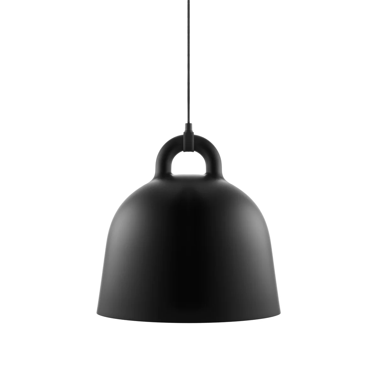 La Bell de Normann Copenhagen est une lampe à éclairage directionnel qui, selon le côté depuis lequel elle est observée, change de personnalité et véhicule de nouvelles expressions. La partie intérieure claire réfléchit la lumière directe qui se diffuse de manière conique et qui pourrait par exemple constituer un bon éclairage au dessus de la table de repas. C'est surtout la combinaison de différentes tailles qui fait de la Bell le centre de tous les regards.