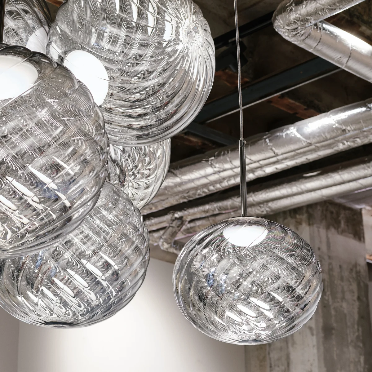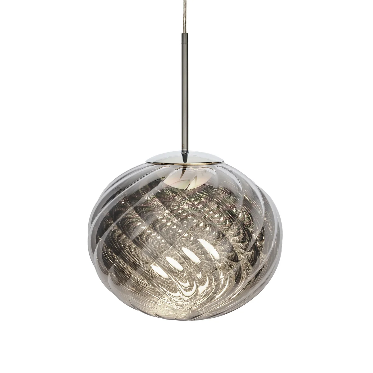 La suspension Whirl est une expérience fascinante avec la lumière et la réflexion, inspirée par l'esthétique audacieuse du mouvement Op Art. Sa structure en spirale crée une interaction hypnotique de mouvement, de profondeur et de brillance. Le jeu de miroirs à l'intérieur crée des motifs abstraits qui changent constamment - une véritable pièce de déclaration qui transforme chaque pièce en une installation lumineuse dynamique.