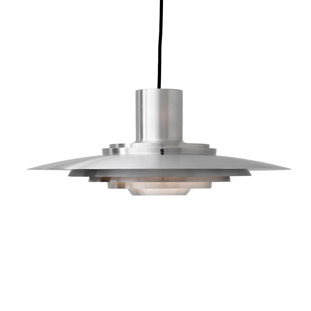 Le luminaire suspendu P376 est disponible en aluminium brossé ou peint en différentes tailles.