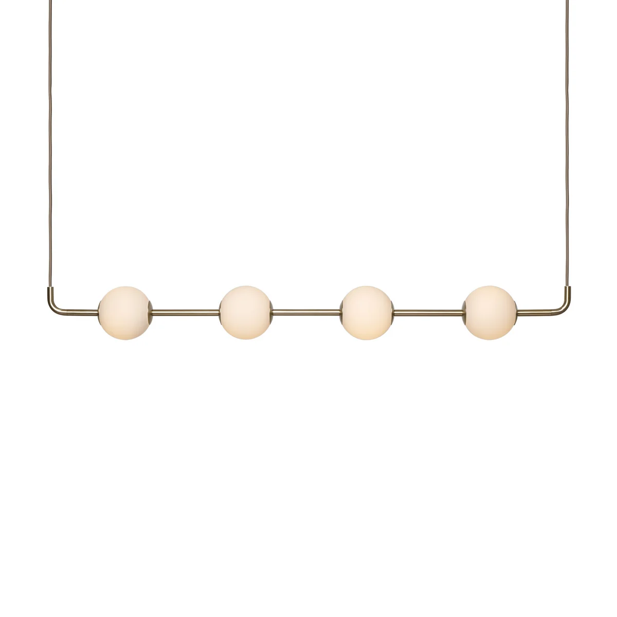 - Suspension linéaire avec quatre boules en verre opale soufflé à la bouche