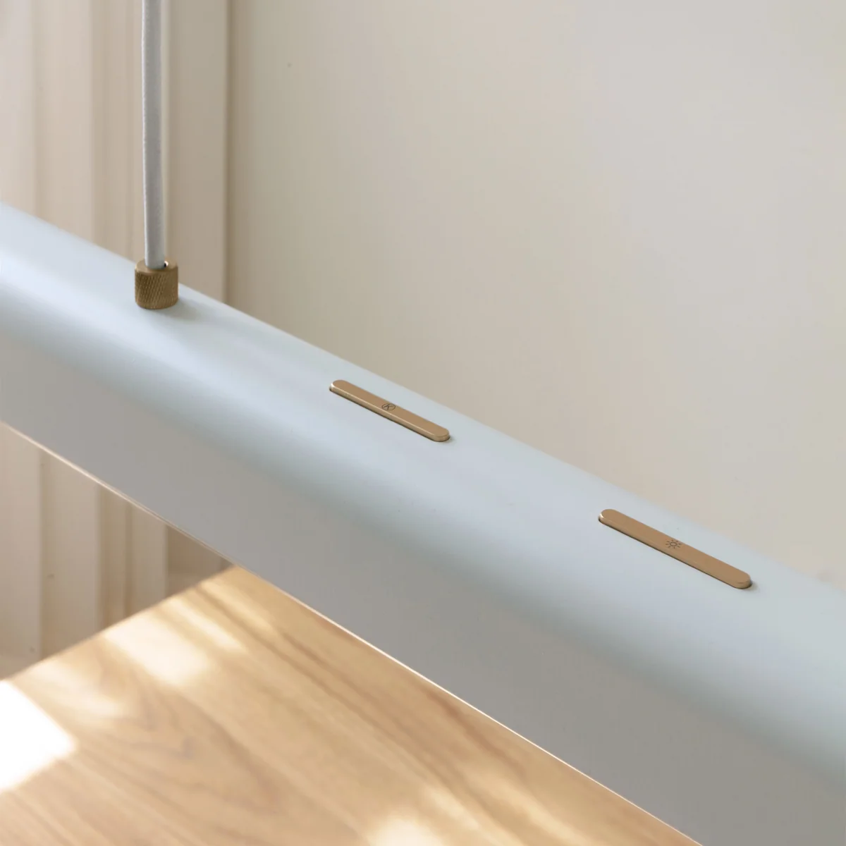 Selon les préférences personnelles, il est possible de Hazel Branch est disponible en différentes couleurs. Le luminaire est fabriqué en acier brossé et orné de détails en laiton. La couleur du câble textile est adaptée selon la version.