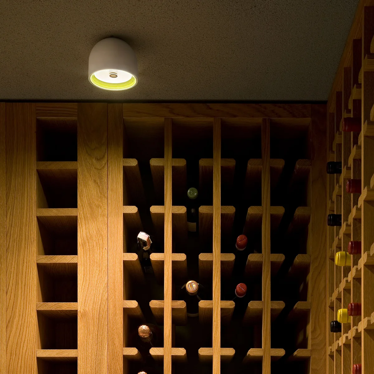 Le design de la lampe Flos WAN de 2005 vient de Johanna Grawunder. Le plafond uni ou Wan dleuchte à lumière directe a un corps de lampe en aluminium et est disponible dans les versions suivantes: chrome, blanc brillant, vert émaillé et noir brillant. La couleur de la version respective se réfère uniquement au corps du luminaire.