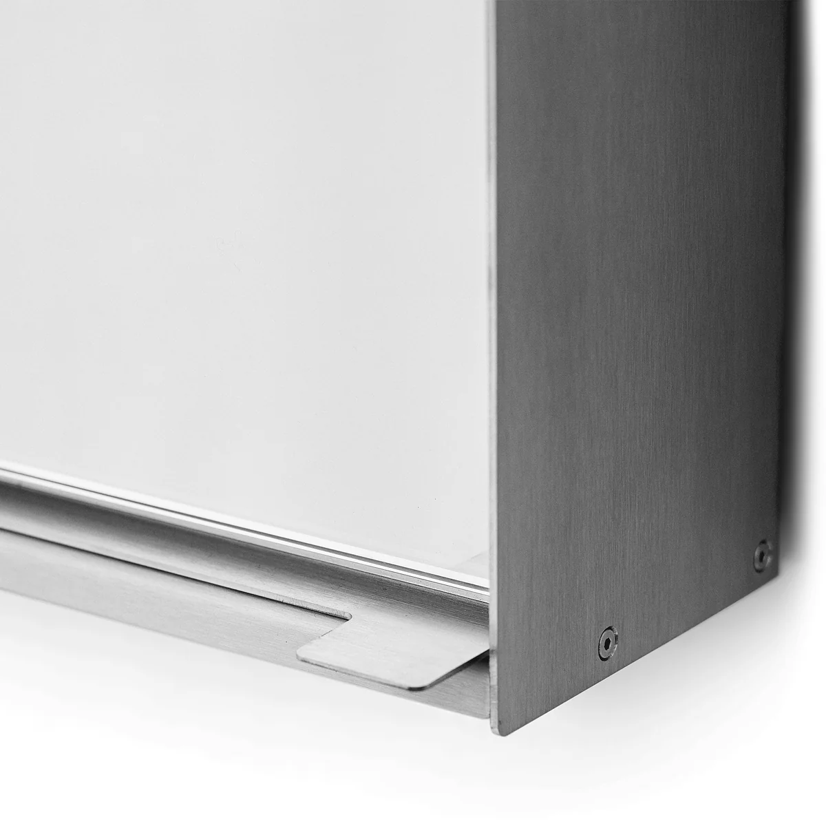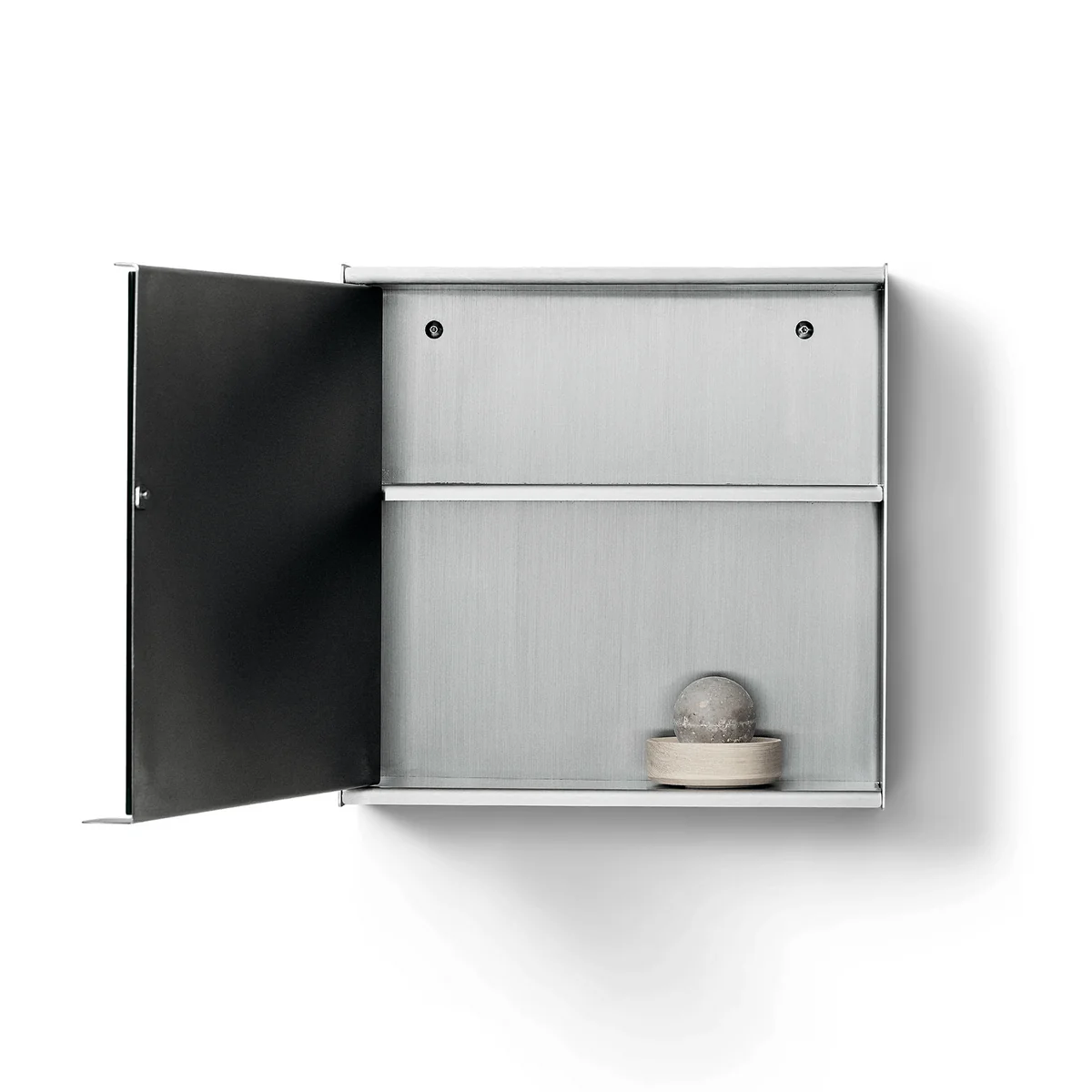 Des supports coudés à l'arrière assurent la stabilité tout en préservant l'aspect ouvert et léger. Les bords délicatement arrondis soulignent l'artisanat de qualité et confèrent aux profilés en acier brut une surface agréablement lisse et tactile. Derrière le miroir se trouve un espace de rangement dissimulé et étroit qui permet de conserver les ustensiles importants de manière ordonnée et à portée de main - pour une ambiance ordonnée et minimaliste.