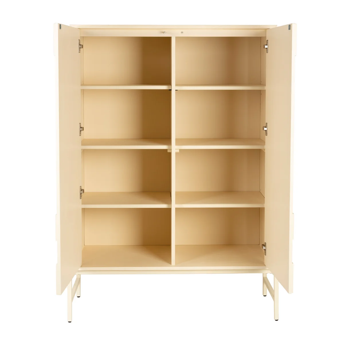 Avec deux portes et huit compartiments au total, l'armoire offre un espace de rangement généreux pour les objets les plus divers - des livres à la vaisselle en passant par les objets de décoration.