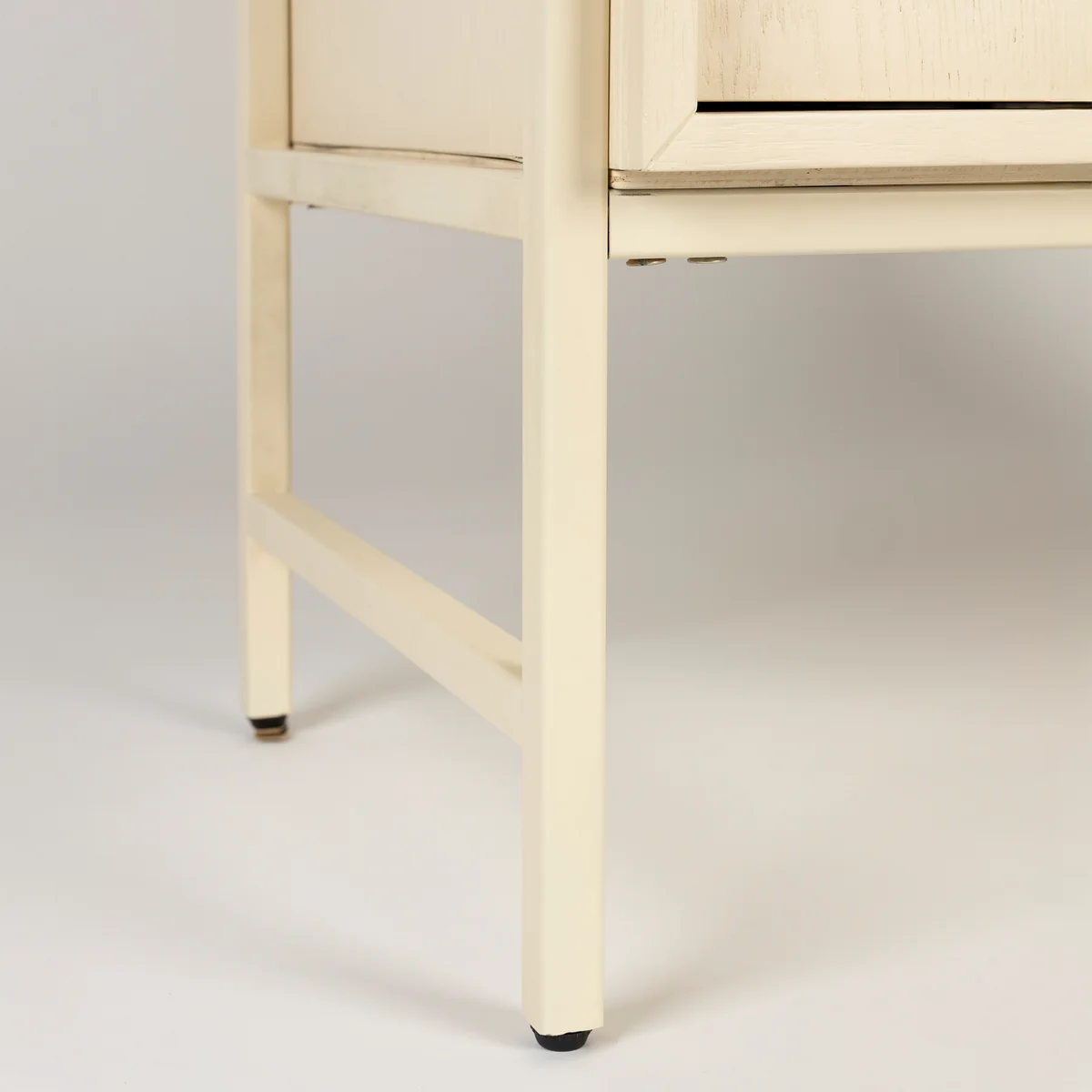 Fabriqué à partir de portes en chêne massif et d'un corps en placage de chêne, le meuble repose sur de hauts pieds métalliques qui lui confèrent une impression de légèreté et de modernité. La fonction Push-to-Open permet une ouverture sans poignée et souligne le design clair et minimaliste.