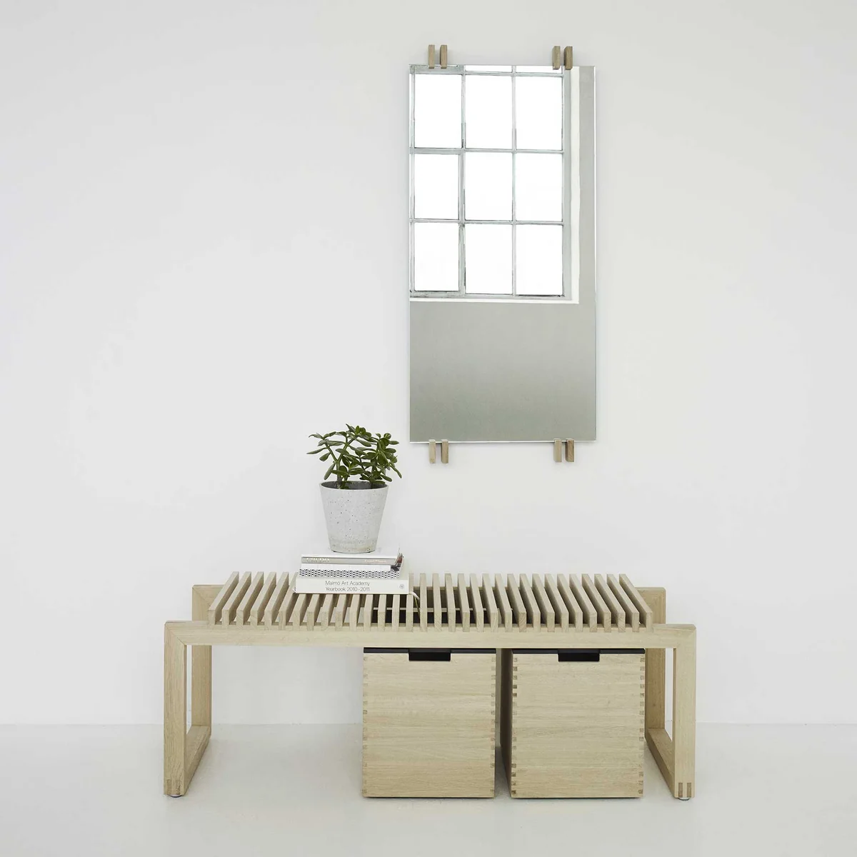 Les meubles de la série peuvent être utilisés de différentes manières et leur fonction évolue en fonction des besoins. Le banc peut servir de siège et de lieu de rangement dans la maison.