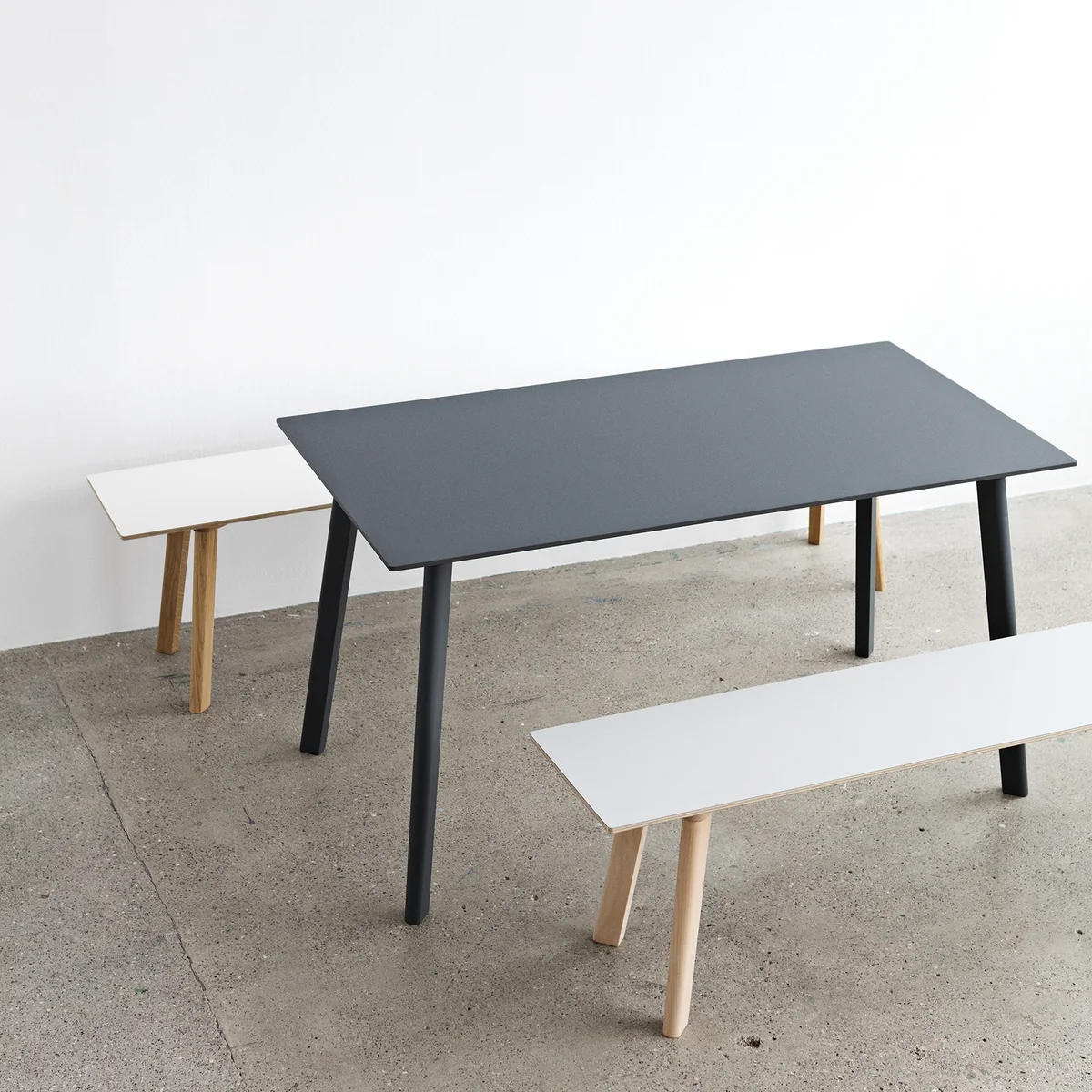La particularité du banc de140 cm de long se trouve dans sa surface spéciale : Avec l’aide des dernières technologies nano, HAY a mis au point un stratifié, qui possède une surface soft touch mate, qui est non seulement extrêmement facile à entretenir, mais évite également les empreintes digitales sur le siège. Les quatre pieds sont réalisés en chêne laqué, procurant au banc son accent naturel.