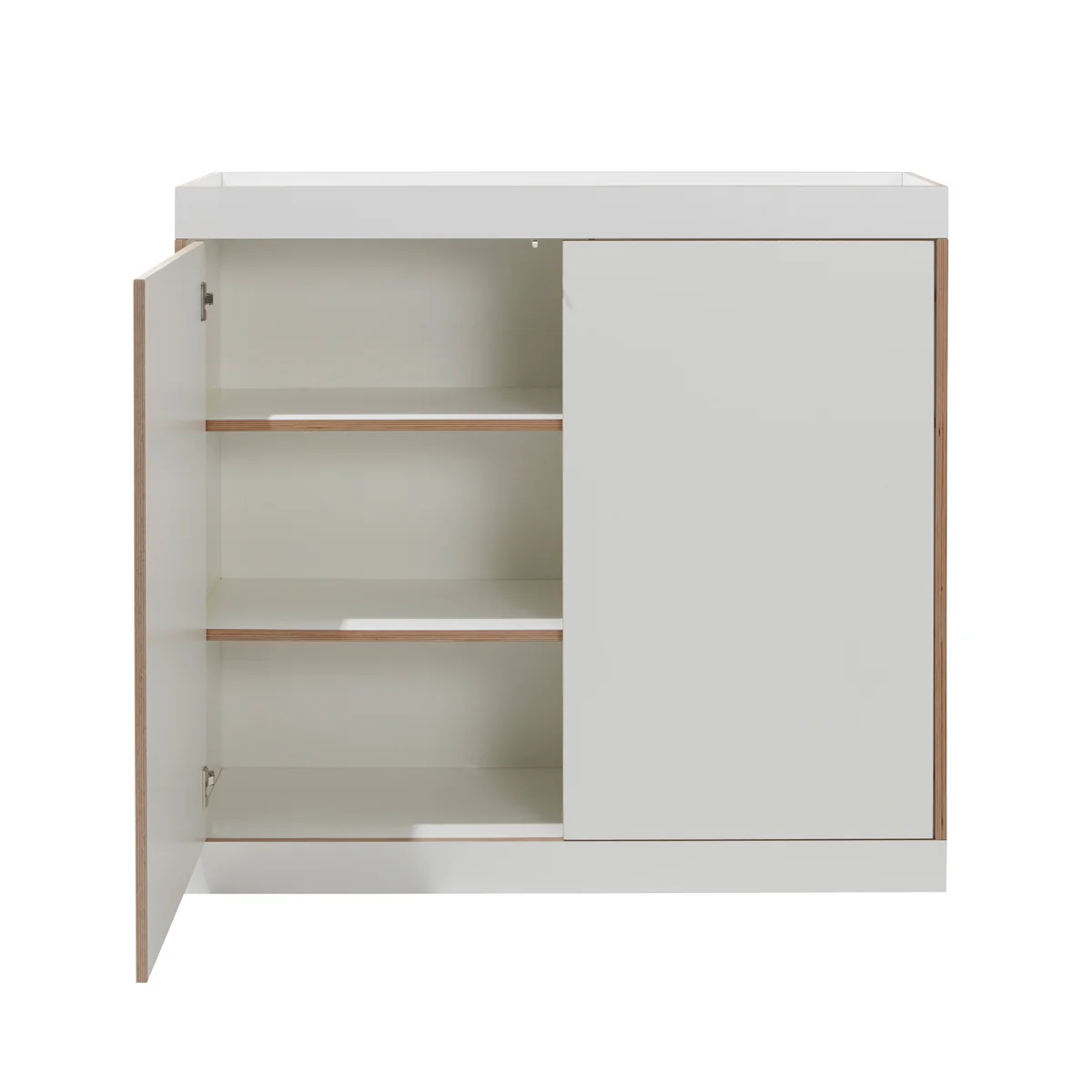 La commode Flai de Müller Small Living est disponible en blanc ou en anthracite, ainsi qu'avec des tiroirs ou des portes.