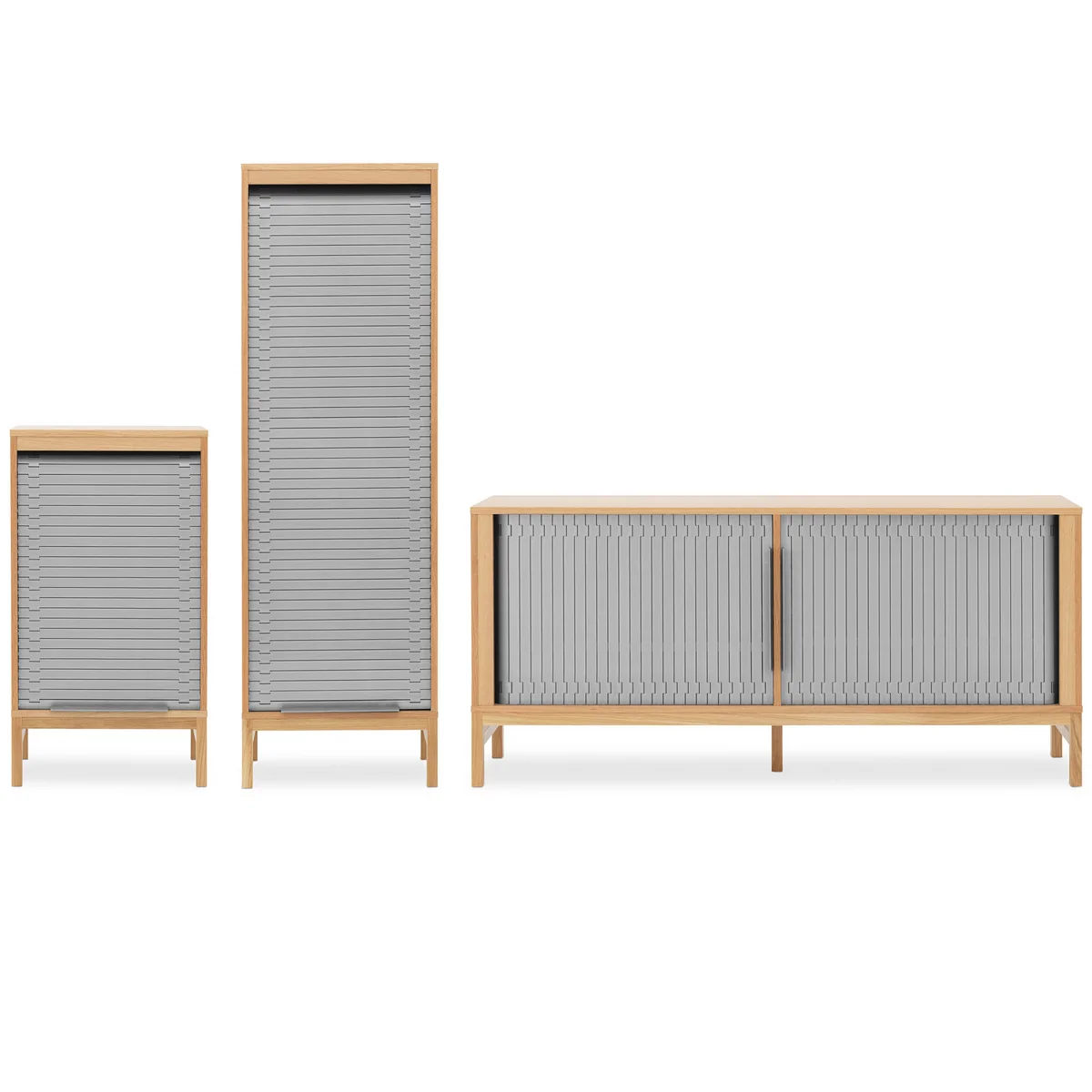 Le buffet Jalousi de Normann Copenhagen est une version moderne des armoires classiques à portes coulissantes que l'on trouve si souvent dans les bureaux et les salles de travail. Le buffet Jalousi a été tellement remanié qu'il a également une belle apparence dans l'espace habitable et n'a rien perdu des avantages pratiques des armoires à roulettes. Le design a été créé par Simon Legald, qui s'est inspiré des montres-bracelets, des tapis roulants et des meubles des années 50 pour la série Jalousi.