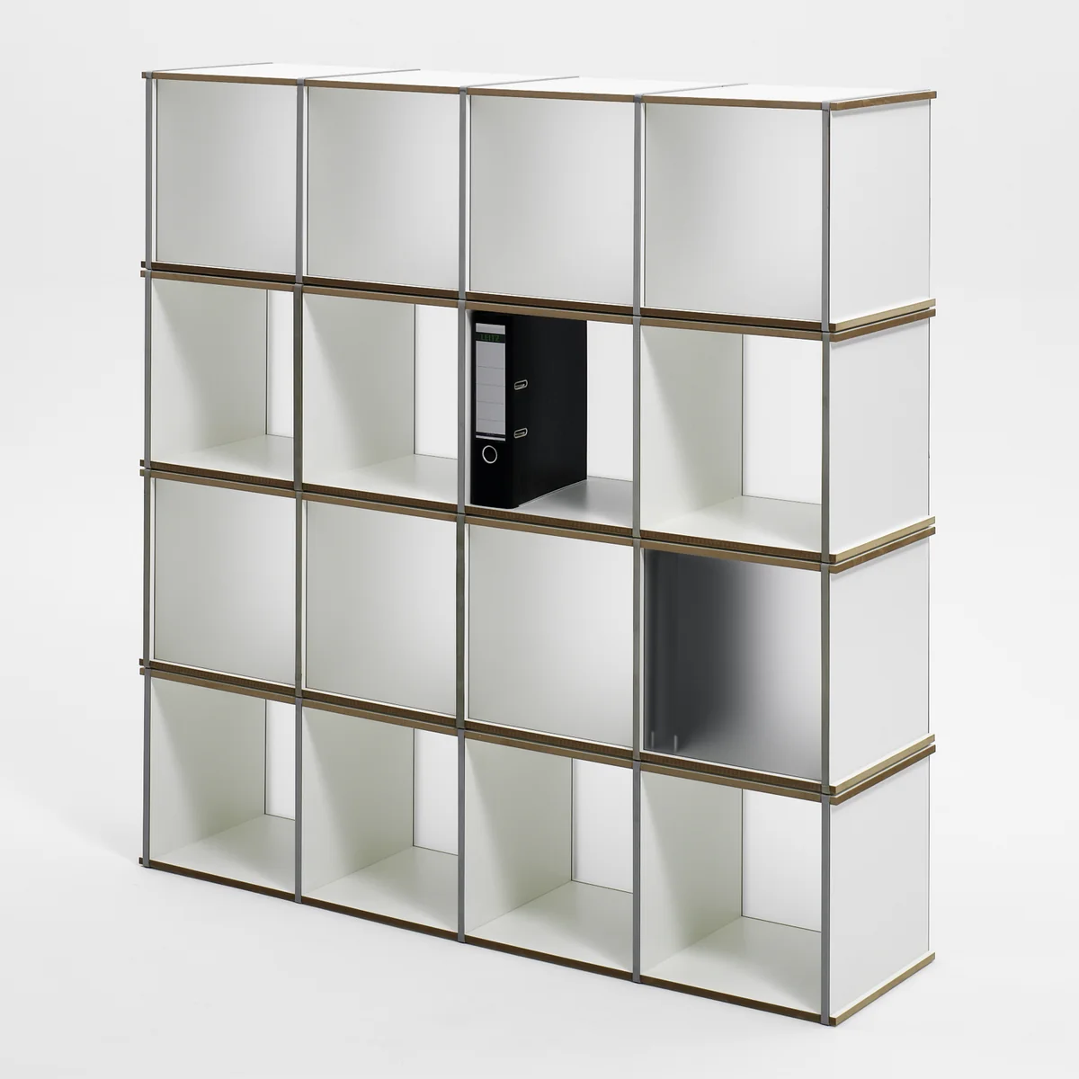 Mais également en espace privé, Aktenpack peut être utilisé comme étagère de présentation d’objets, vases ou autre accessoires ou comme bibliothèque élégante pour les livres, il s’utilise aussi comme placard dans le couloir, séparateur d’espace comme side ou lowboard.