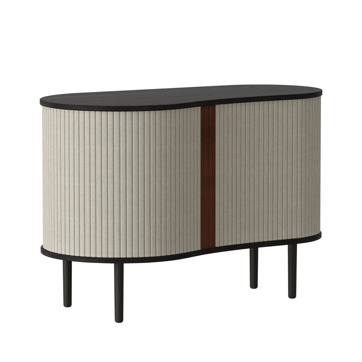 Les angles harmonieux de la commode conçue par Jonas Søndergaard arrondissent son profil, ce qui lui permet de s'intégrer facilement même dans une pièce à l'espace limité. Les portes coulissantes à enroulement possèdent un revêtement textile, ce qui Audacious ce qui leur confère un toucher doux.