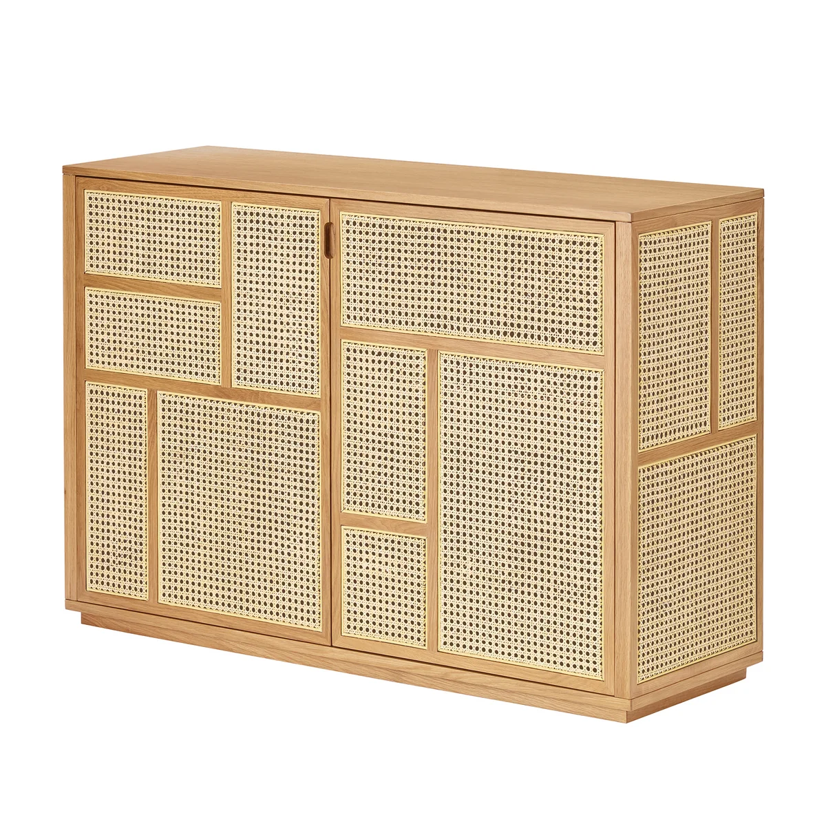 Le Air Sideboard est un design de Mathieu Gustafsson pour le label suédois Design House Stockholm . Le designer aux racines suédoises et françaises a réussi à créer un mélange spécial des deux cultures avec le design unique du buffet aéré. Des matières lumineuses et naturelles sont ici associées à une touche d'élégance. Air est une unité de stockage qui est faite d'une construction de cadre ordonnée et graphique en combinaison avec des murs faits d'une canne traditionnelle et transmet ainsi une sensation particulière de légèreté et de transparence.