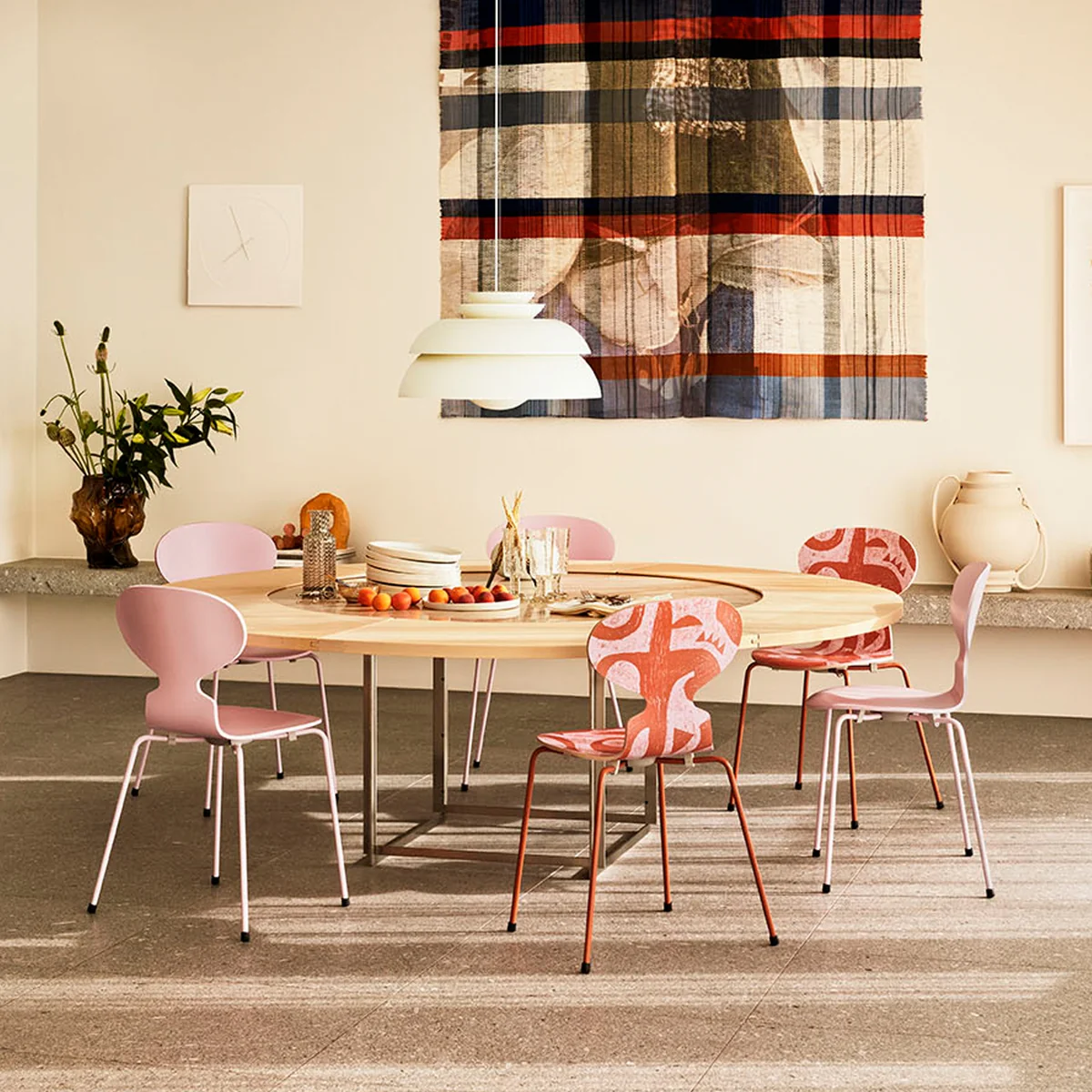 Belle et élégante - C'est ainsi qu'apparaissait en 1952, la chaise "Ameise" de Arne Jacobsen par Fritz Hansen. Le processus de fabrication était révolutionnaire en son temps et la forme inhabituelle. Ameise bénéficia d'une popularité immédiate. Un destin, dont les produits en avance sur leur temps, bénéficient souvent. Depuis, le temps a finalement rejoint "Ameise" et la chaise est devenue un classique de plus de Fritz Hansen.