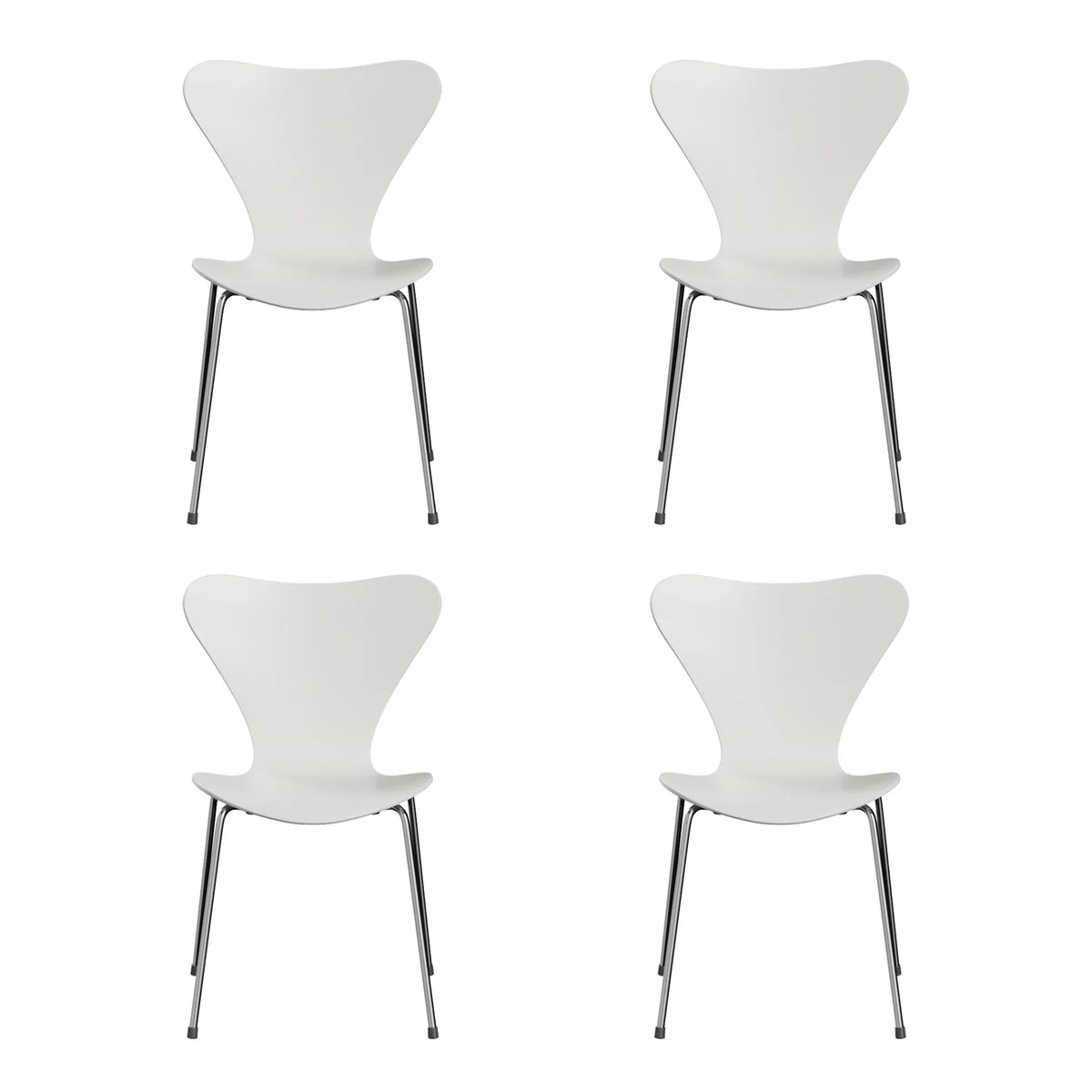 La chaise Série 7 est aujourd'hui produite - d'après les dessins originaux d'Arne Jacobsen - par Fritz Hansen . La coque d'assise aux courbes douces est disponible en différents coloris.
